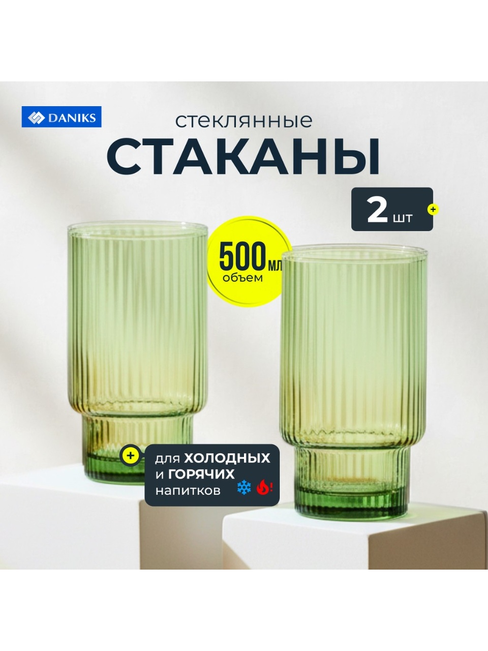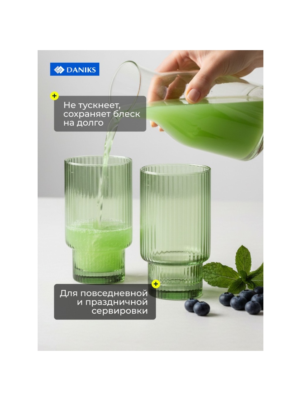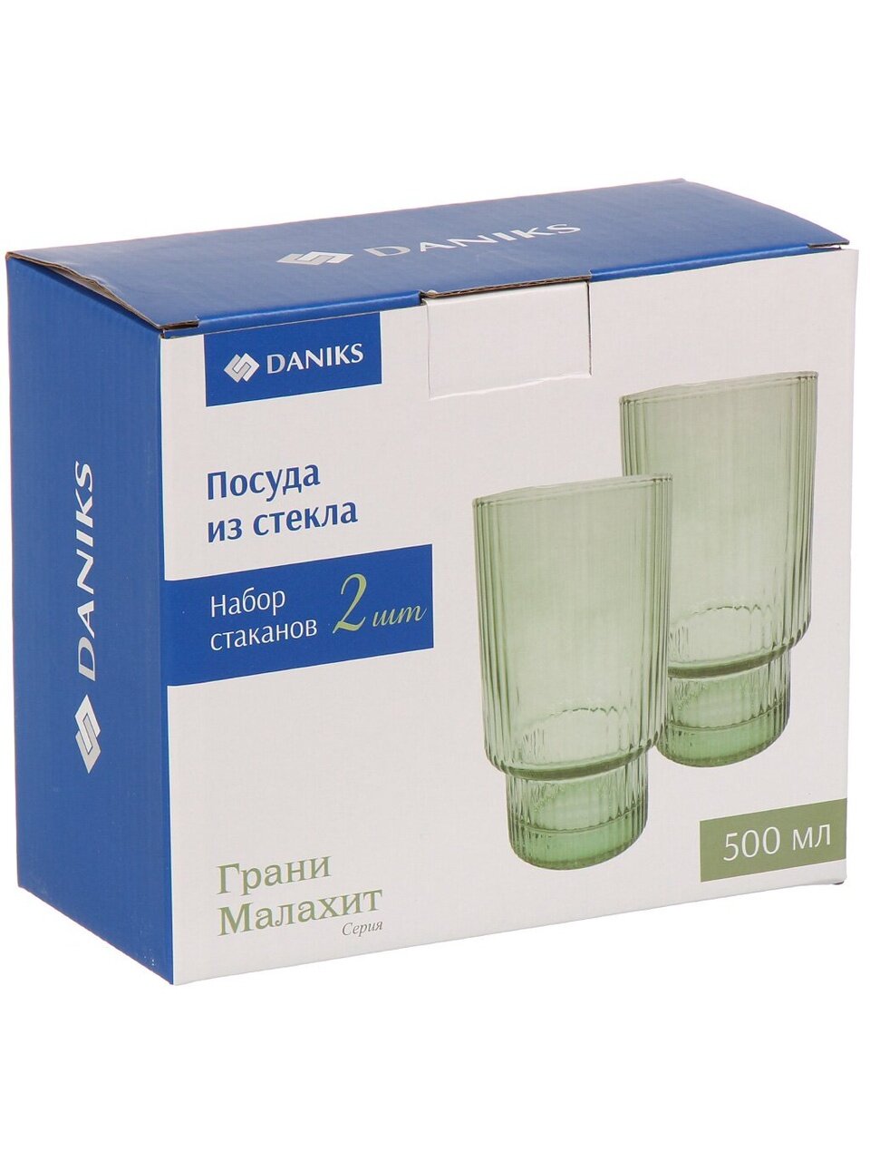 Набор стаканов 500 мл Daniks Грани Малахит — стильное решение для дома и подарка: 2 стеклянных стакана, современный дизайн, оптимальный объём для воды и коктейлей.