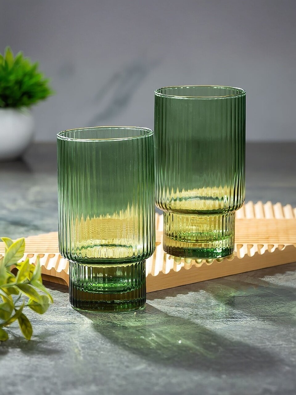 Объём каждого стакана — 500 мл, форма высокая и широкая, что удобно для ежедневного использования и сервировки напитков.
