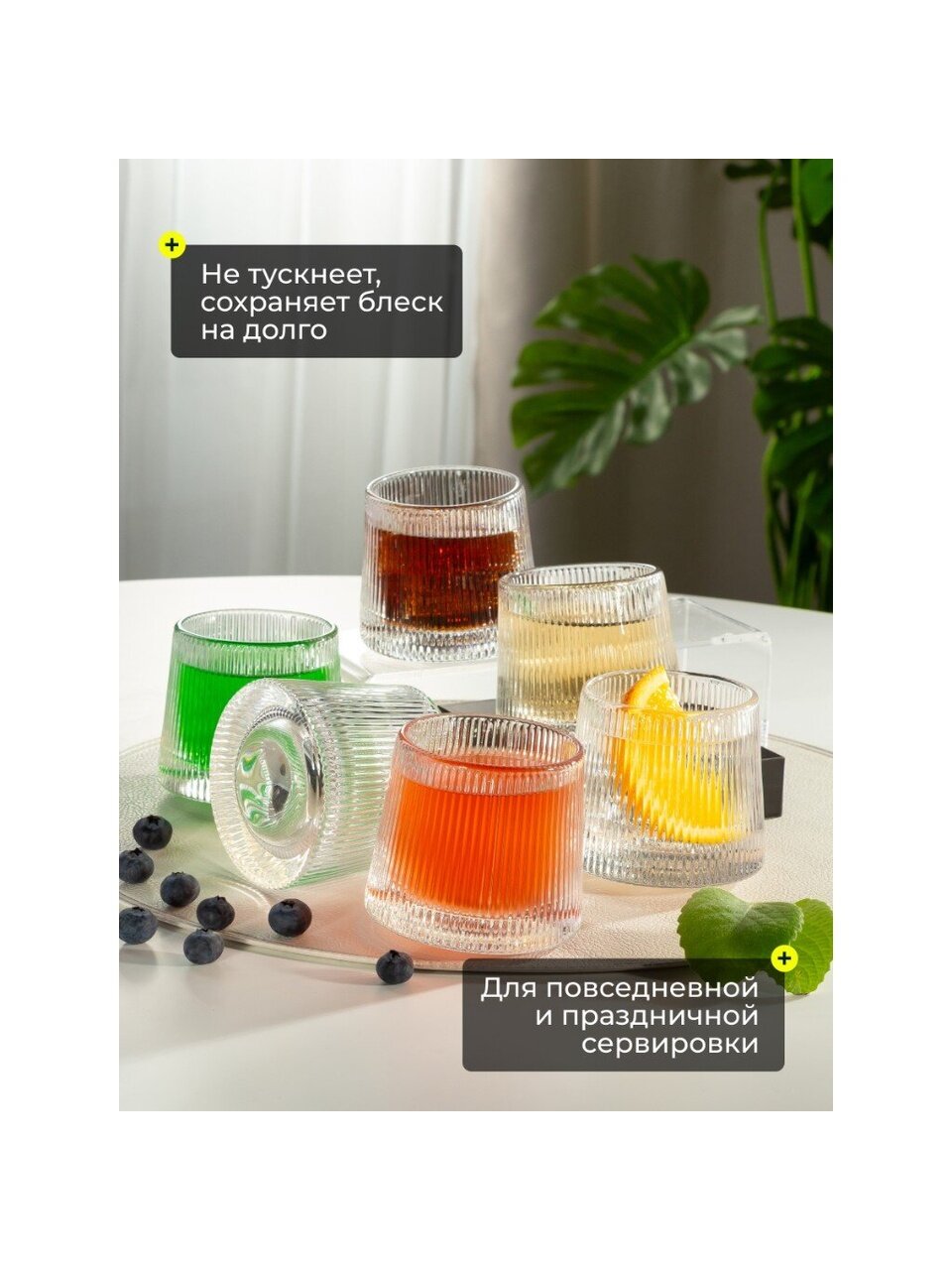 В отличие от аналогов с двойными стенками или с трубочкой, эти стаканы легче мыть, их можно безопасно использовать в посудомоечной машине. Благодаря низкой широкой форме, стаканы устойчивы и подходят для сервировки на любой поверхности. Для тех, кто спрашивает, подходит ли набор для подарка — да, минималистичный стиль и универсальность делают его отличным выбором для любого повода. Как использовать стаканы? Просто: для воды, сока, виски, коктейлей — универсальность подтверждена экспертами в области сервировки.