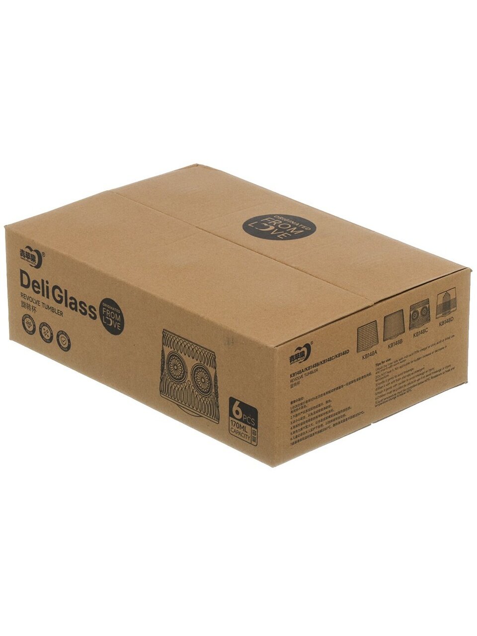 Объем каждого стакана — 170 мл, форма рокс (низкий, широкий), цвет — бесцветный, материал — прочное стекло, количество в наборе — 6 штук.