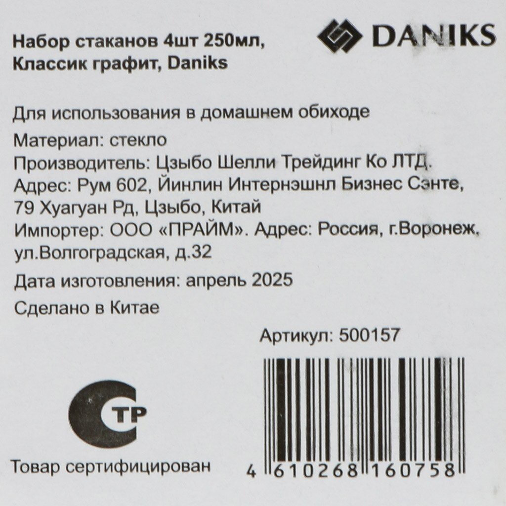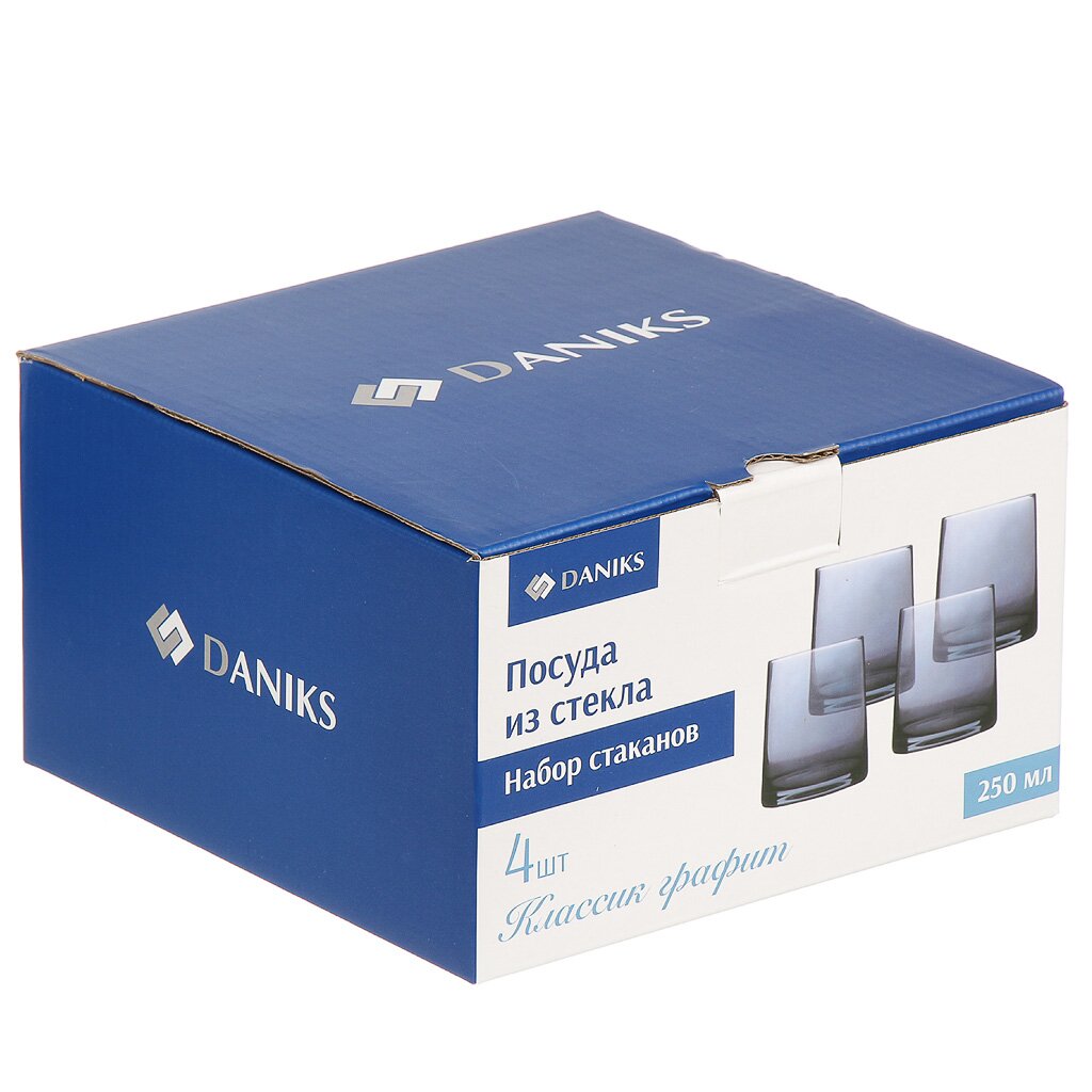 Стакан 250 мл, стекло, 4 шт, Классик, графит, Daniks