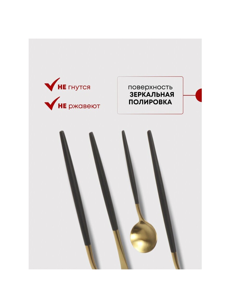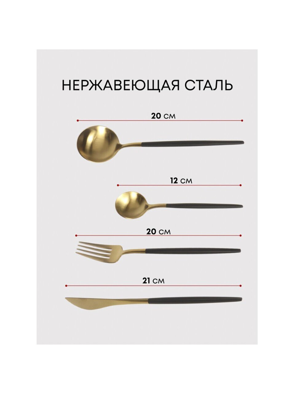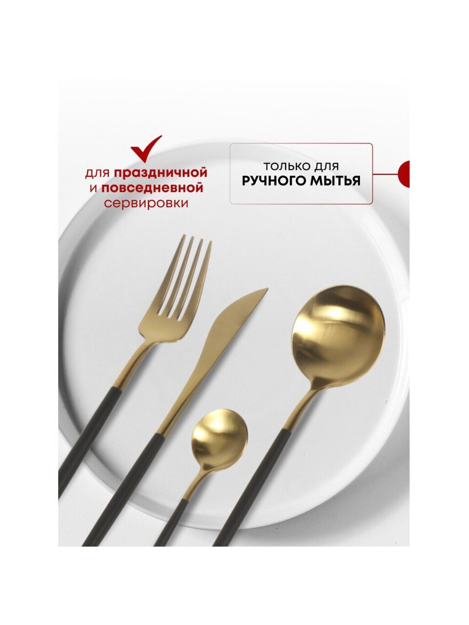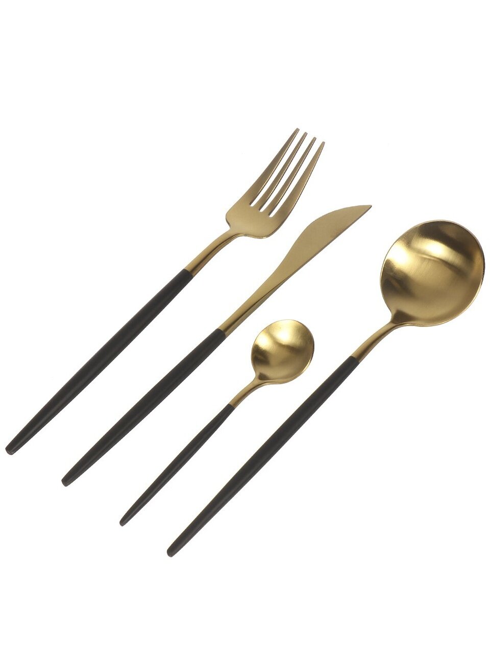 Премиальный набор столовых приборов из нержавеющей стали на 6 персон: элегантный черный с золотом, 24 предмета в подарочной упаковке — идеальный подарок и стиль для вашего стола.