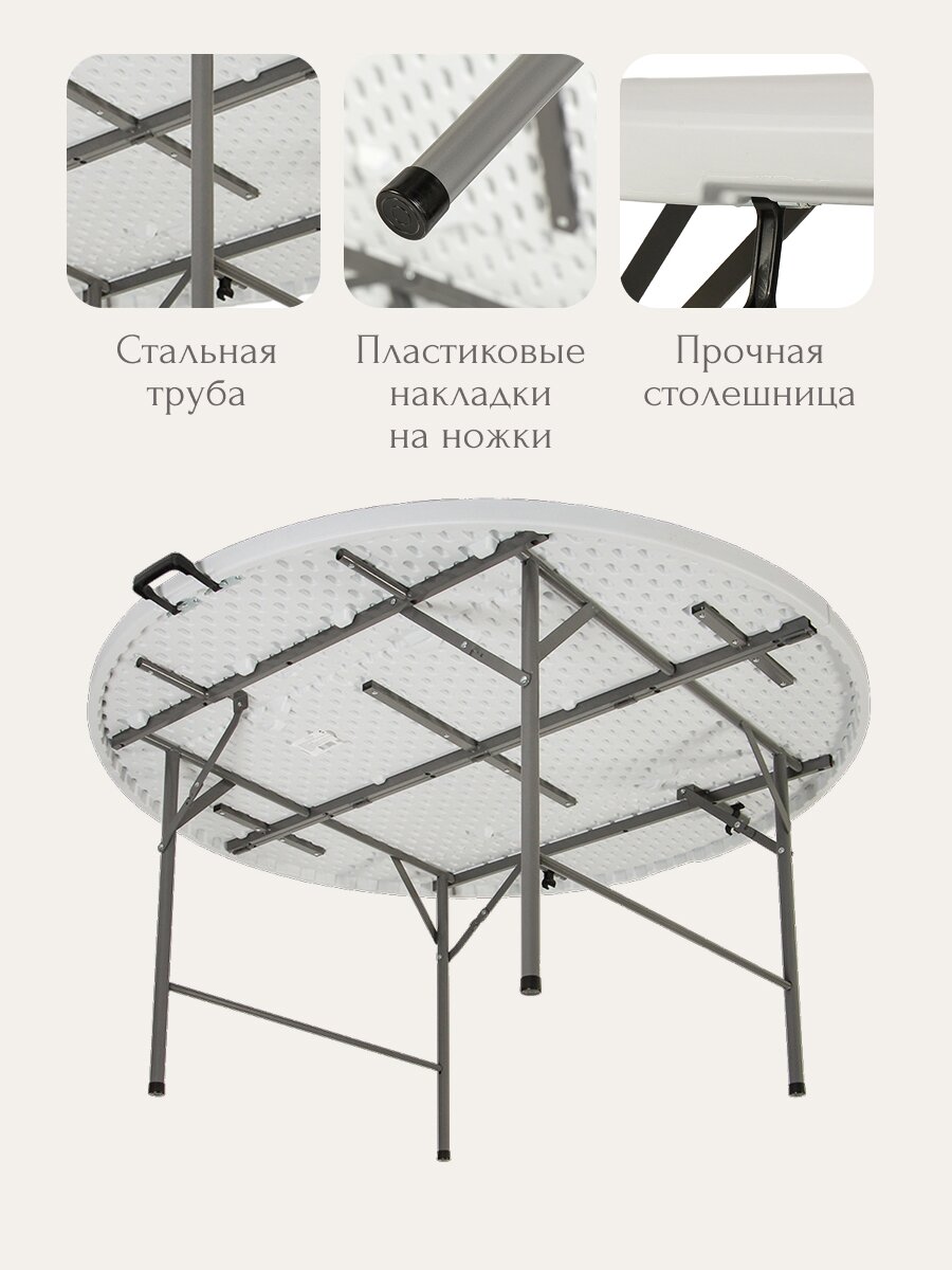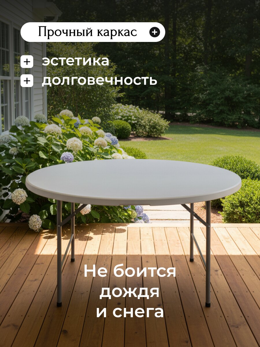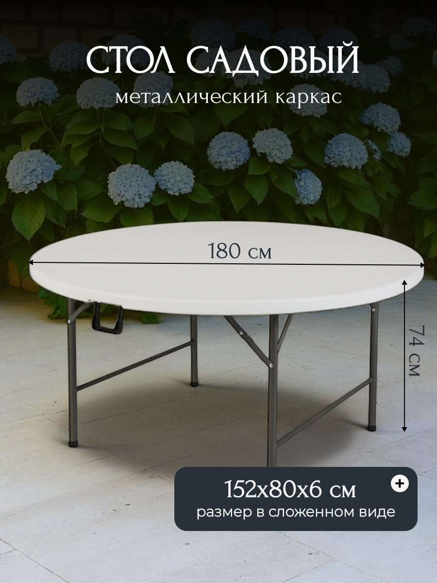 Стол садовый Green Days Марьяна Max 180х180: круглый дизайн, металл и пластик, идеально для дачи и дома — выгодная покупка с гарантией 12 мес.