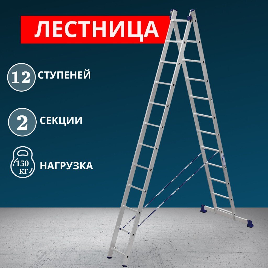 Вы можете приобрести «Лестница 2 секции, 12 ступеней, алюминий, 5.62 м, 150 кг, Alumet, 5212» и другие товары в нашем интернет-магазине в Краснодаре по низким ценам и с бесплатным самовывозом.