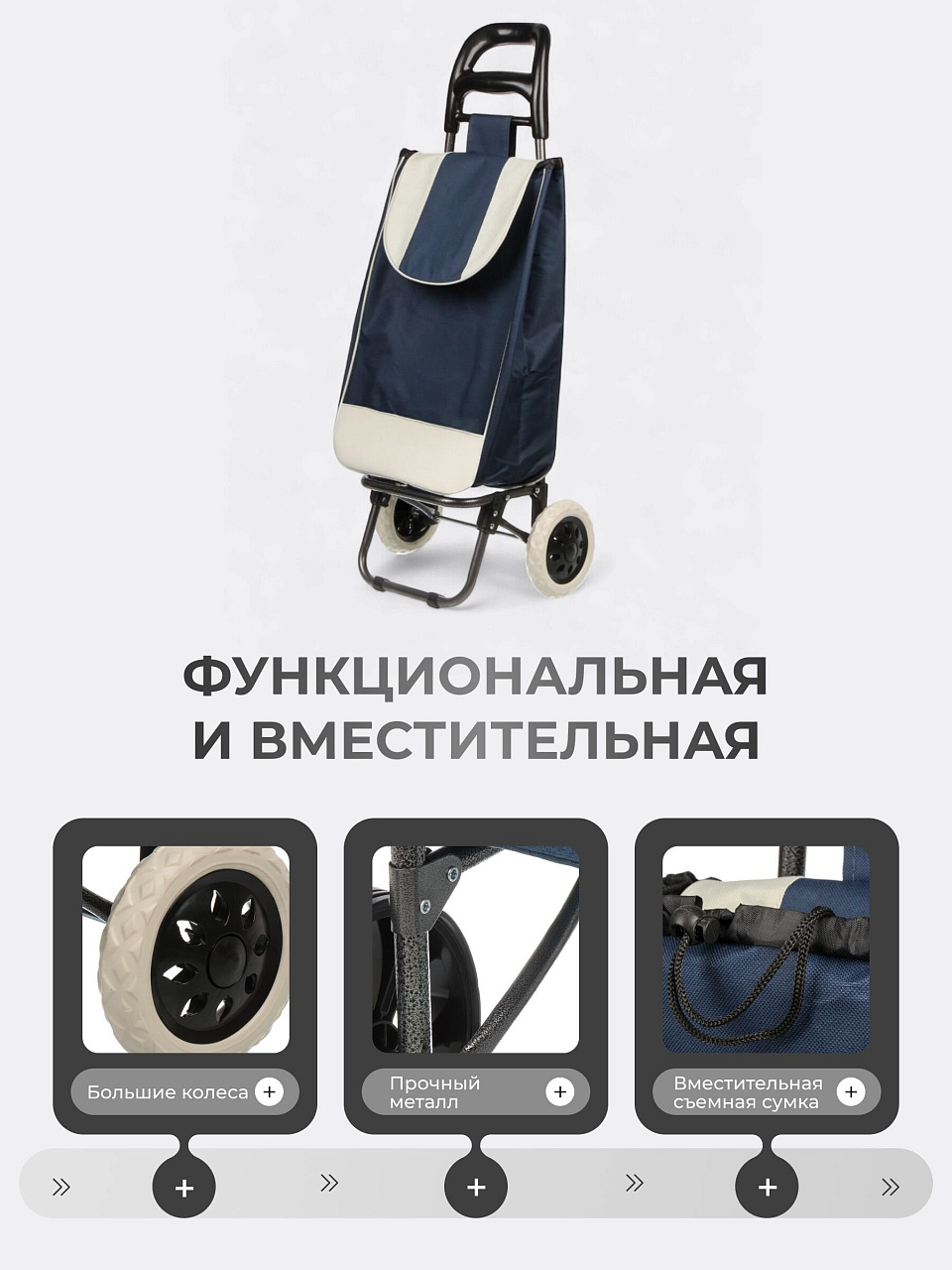 - прочность материалов: полиэстер, пластик и металл гарантируют долговечность и устойчивость к износу, что делает тележку надежным спутником на долгие годы;