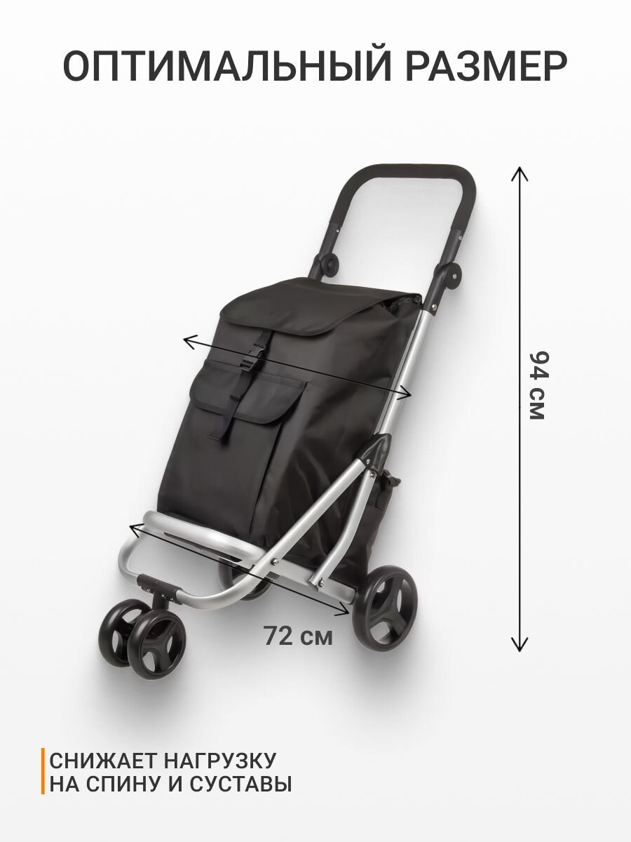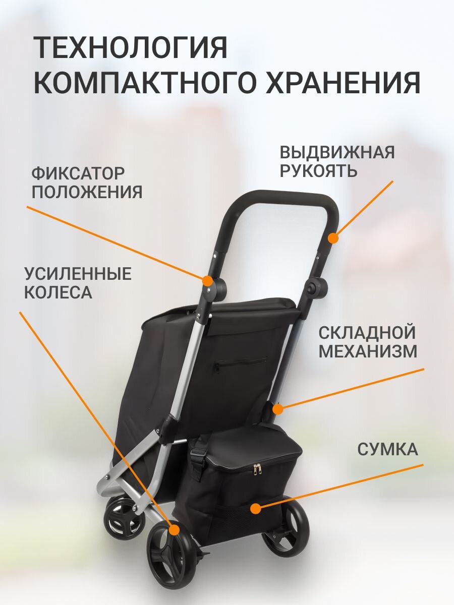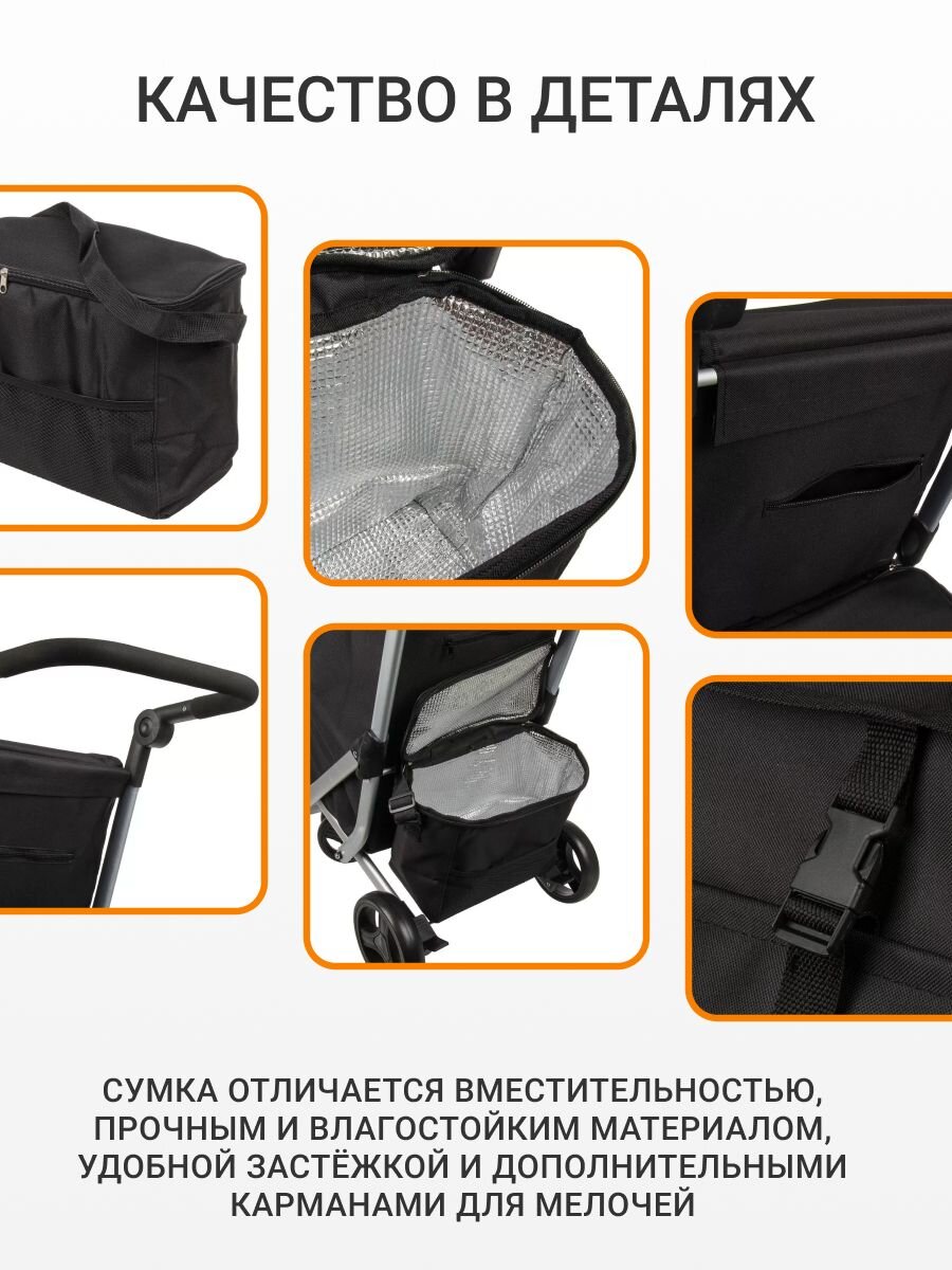 Тележка хозяйственная, 94х41х72 см, металл, черн, с сумкой, складная, A150018 – идеальное решение для тех, кто ценит удобство, мобильность и порядок в повседневных делах. Благодаря складной конструкции и вместительной сумке, транспортировка покупок, садового инвентаря или других домашних вещей становится простой и комфортной задачей. Стильный черный цвет гармонично впишется в любой интерьер или экстерьер, а прочная металлическая основа обеспечивает долговечность и надежность использования.