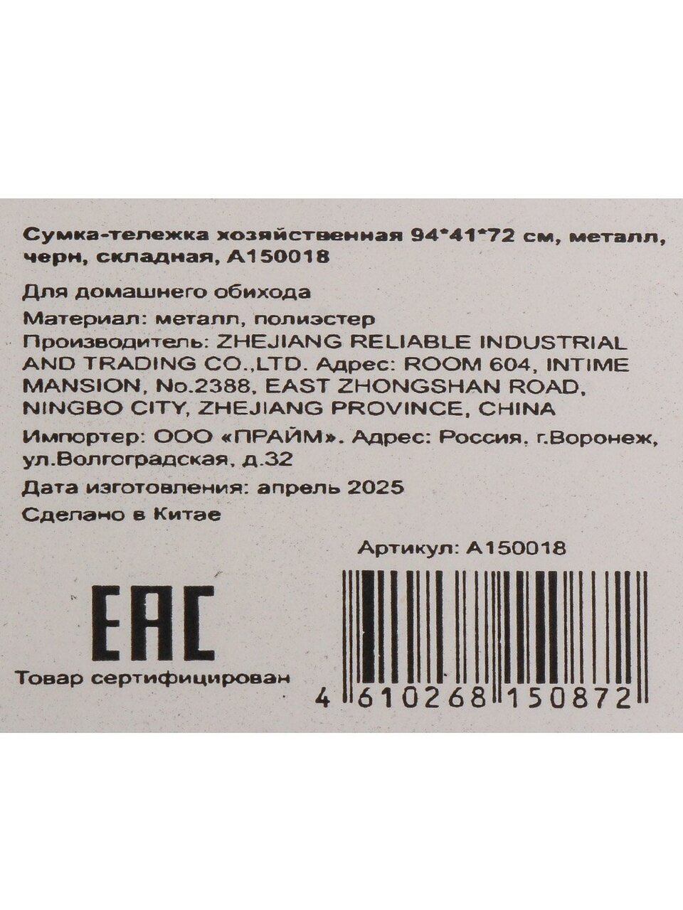 Вы можете приобрести «Тележка хозяйственная 94х41х72 см, металл, черная, с сумкой, складная, A150018» и другие товары в нашем интернет-магазине в Липецке по низким ценам и с бесплатным самовывозом.