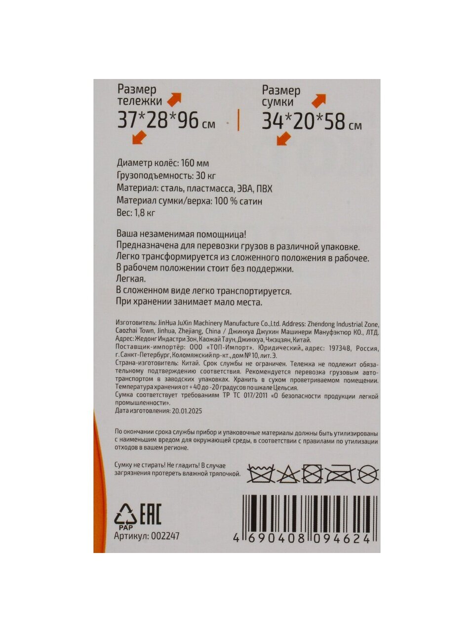 Вы можете приобрести «Тележка складная 37х28х96 см, металл, 100% сатин, 30 кг, с сумкой, Aqua, A204, 002247» и другие товары в нашем интернет-магазине в Курске по низким ценам и с бесплатным самовывозом.