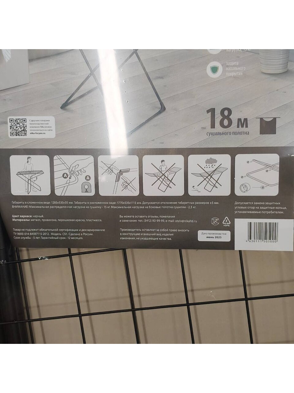 Вы можете приобрести «Сушилка для белья напольная, полотно 18 м, складная, 18 прутьев, 15 кг, черная, Nika, СБ1/Ч» и другие товары в нашем интернет-магазине в Шахтах по низким ценам и с бесплатным самовывозом.