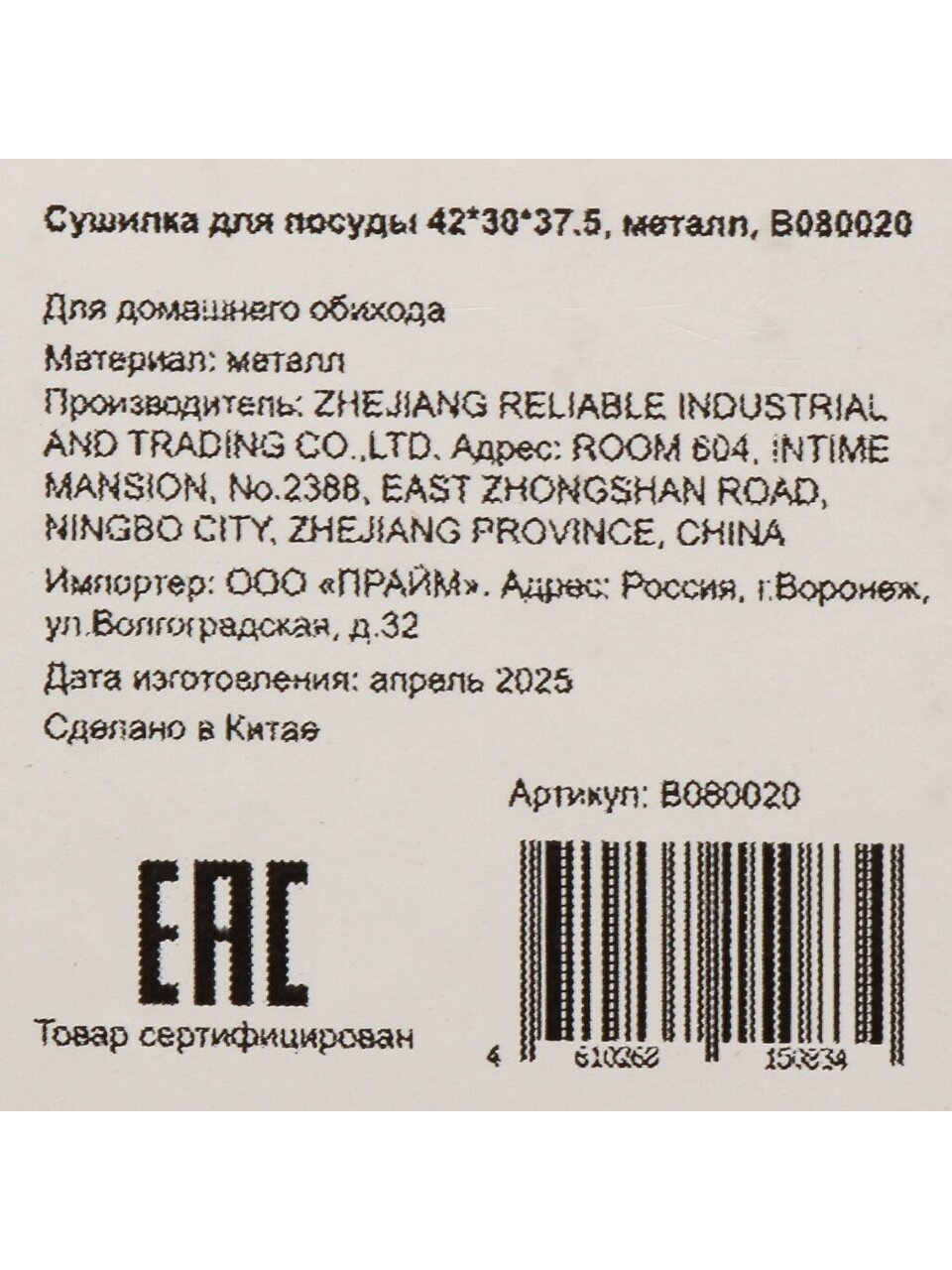 Сушилка отличается долговечностью и устойчивостью к влаге, что делает ее отличным выбором для активного использования. Прочный металл не подвержен деформации, легко очищается и сохраняет привлекательный внешний вид даже при постоянной эксплуатации. Компактные габариты позволяют разместить сушилку даже на небольшой рабочей поверхности, при этом она достаточно вместительна для тарелок, чашек и столовых приборов.