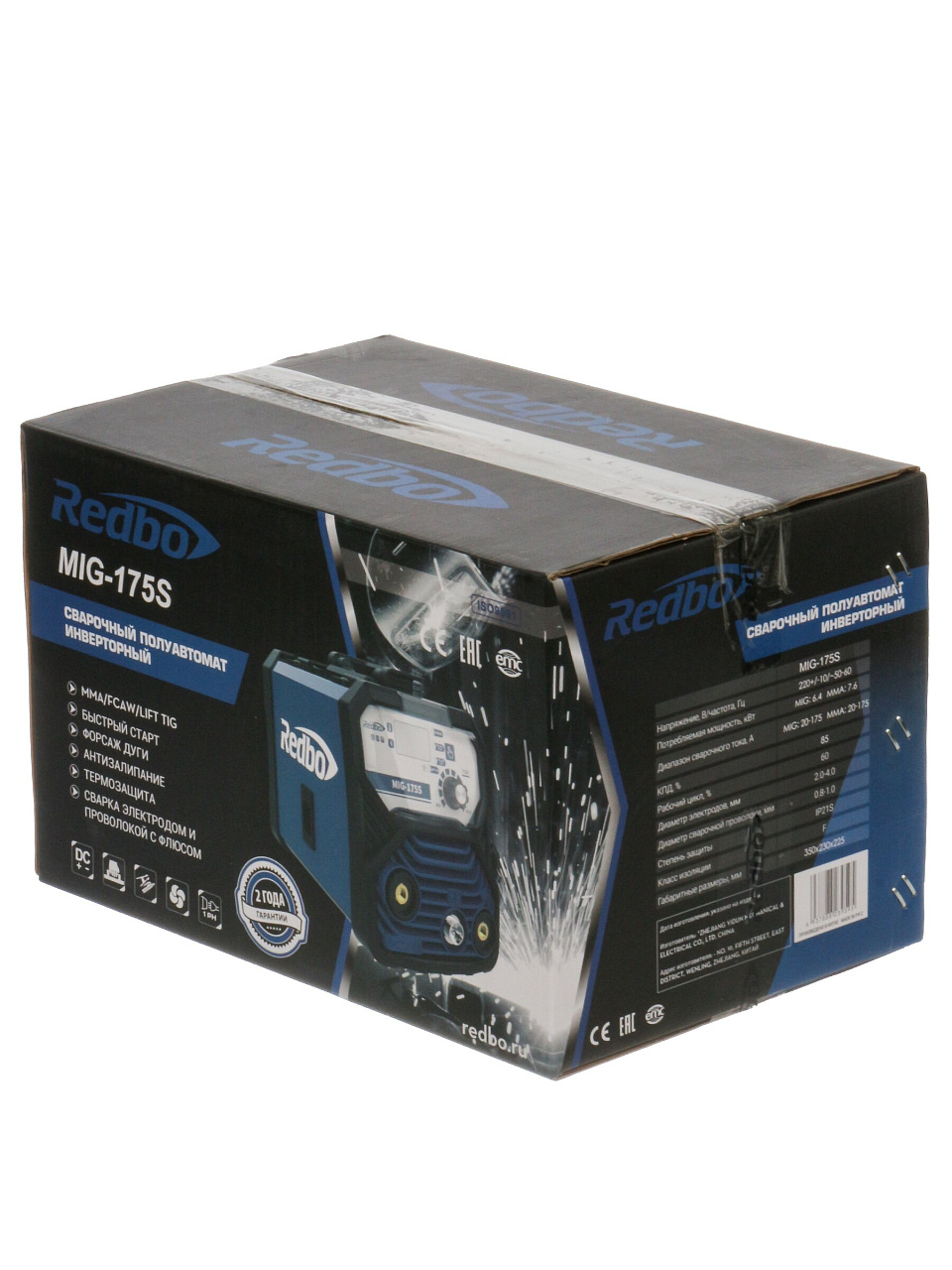 Сварочный аппарат REDBO MIG-175S — компактный инвертор 7,5 кВт для дома и дачи: надежная полуавтоматическая сварка, горячий старт, защита от перегрева.