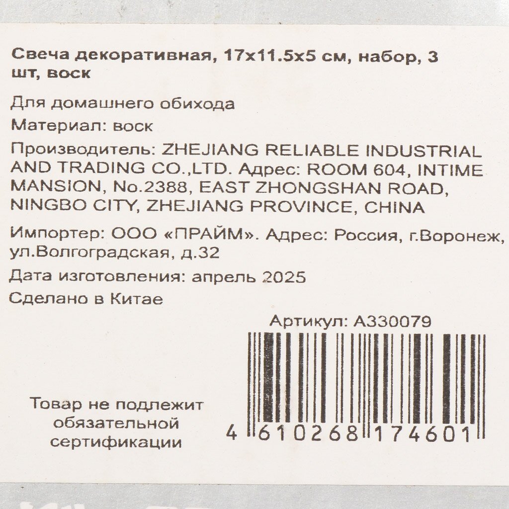 Декоративные свечи 17х11.5х5 см, набор 3 шт. — стильное украшение для дома и подарка, без запаха, золотой воск, выгодная цена.