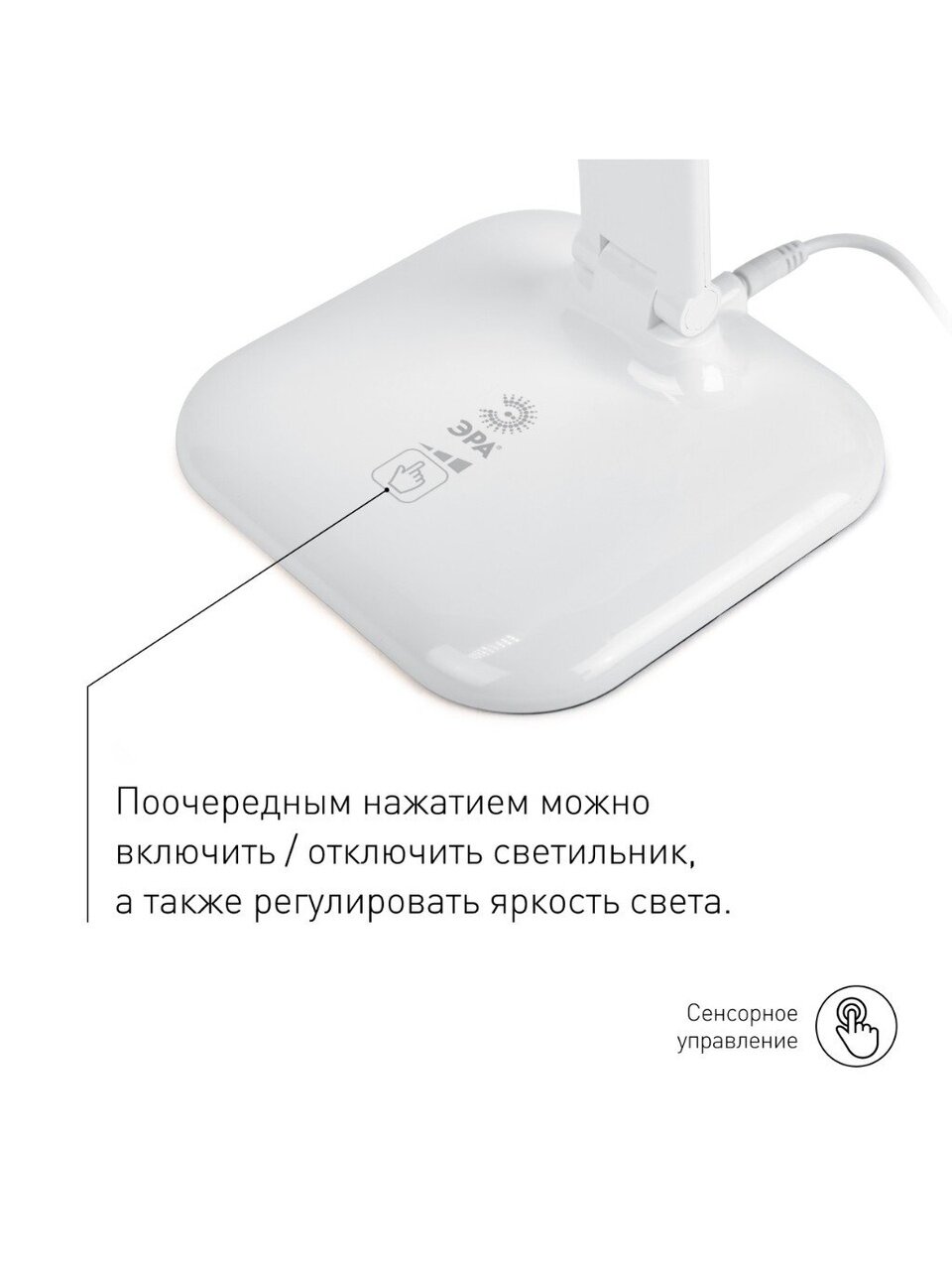 Настольный светильник ЭРА NLED-462-10W-W со светодиодами (LED) в качестве источников света. Оснащен сенсорным управлением, есть регулировка яркости освещения - 3 уровня. Складная конструкция для оптимального хранения.