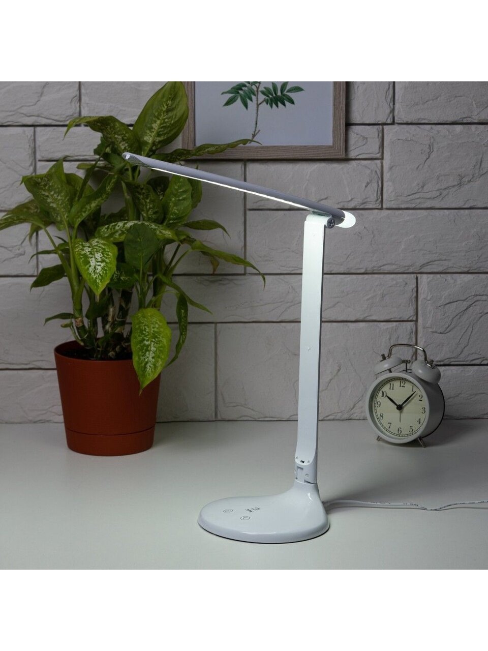 Настольный светильник ЭРА NLED-482-10W-W - удобная складная модель с сенсорным управлением, с тремя уровнями яркости и светодиодным ночником в верхней части плафона. Светит холодным белым светом, который бодрит и повышает работоспособность. Ночник в верхней части плафона имеет отдельный сенсорный выключатель на основании.