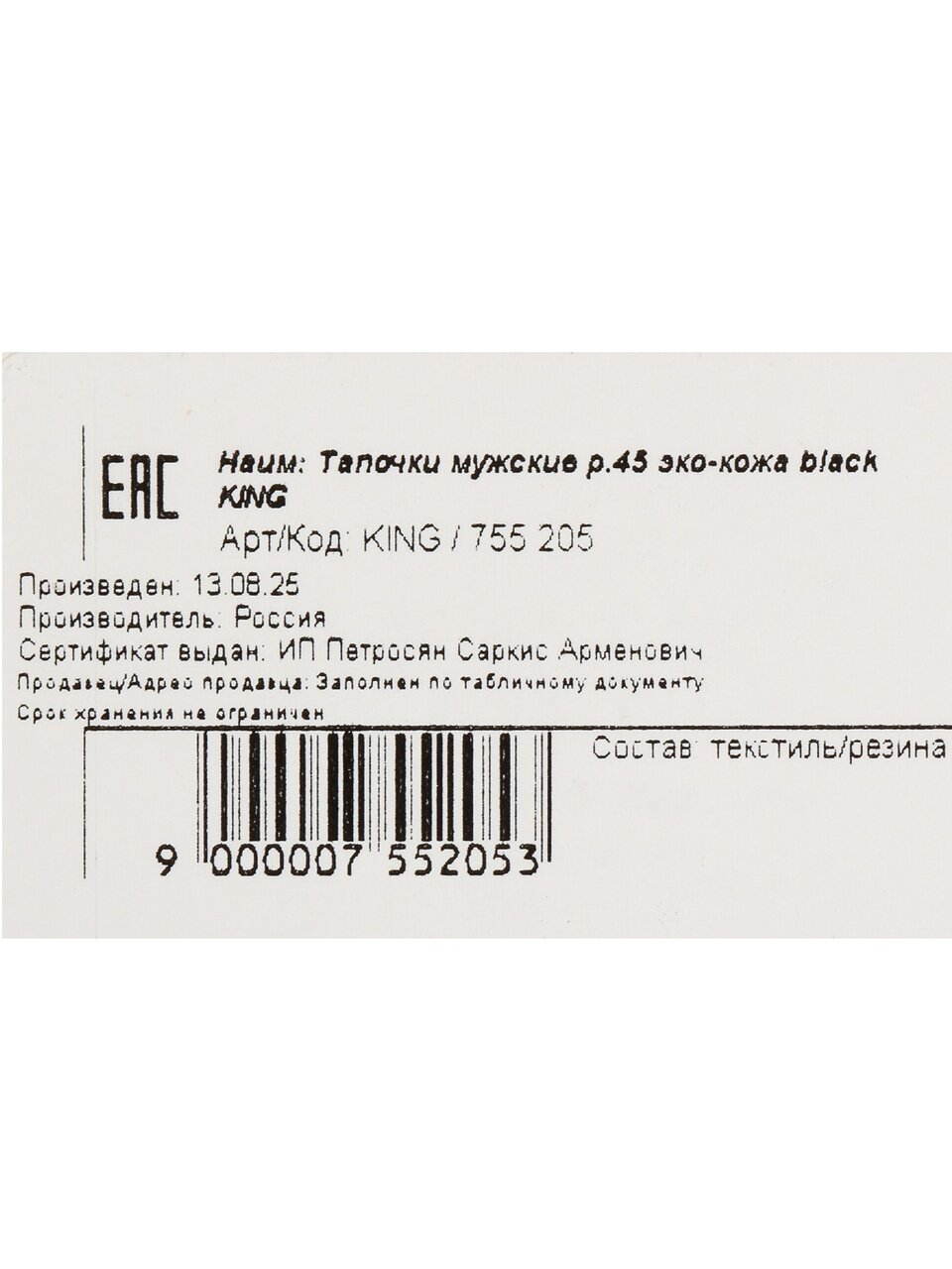 Тапки для мужчин, эко-кожа, черные, р. 45, открытые, King - фото 1 от пользователяТапки для мужчин, эко-кожа, черные, р. 45, открытые, King - фото 2 от пользователя