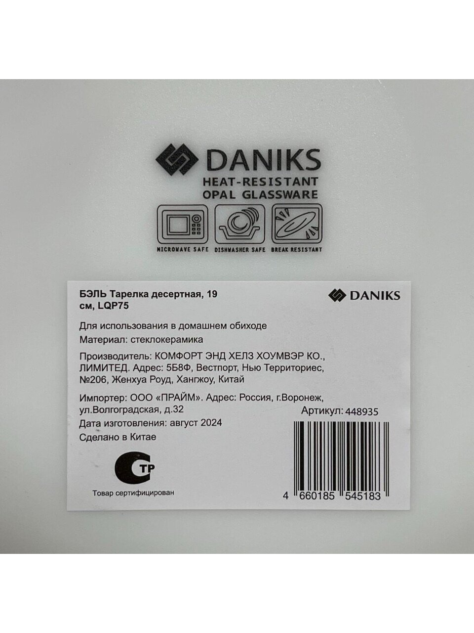 Десертная тарелка Daniks Бэль 19 см — универсальное решение для стильной сервировки, прочная стеклокерамика, подходит для СВЧ и посудомоечной машины.