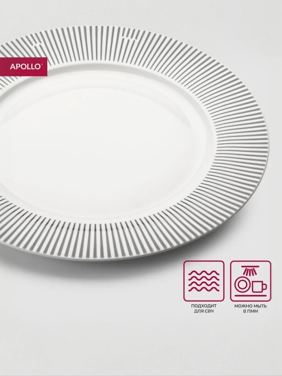 Фарфор прочнее стекла и керамики, не впитывает запахи, устойчив к царапинам и сохраняет внешний вид даже при частом использовании. Это делает Apollo Stripes практичным выбором для дома, дачи и подарка.