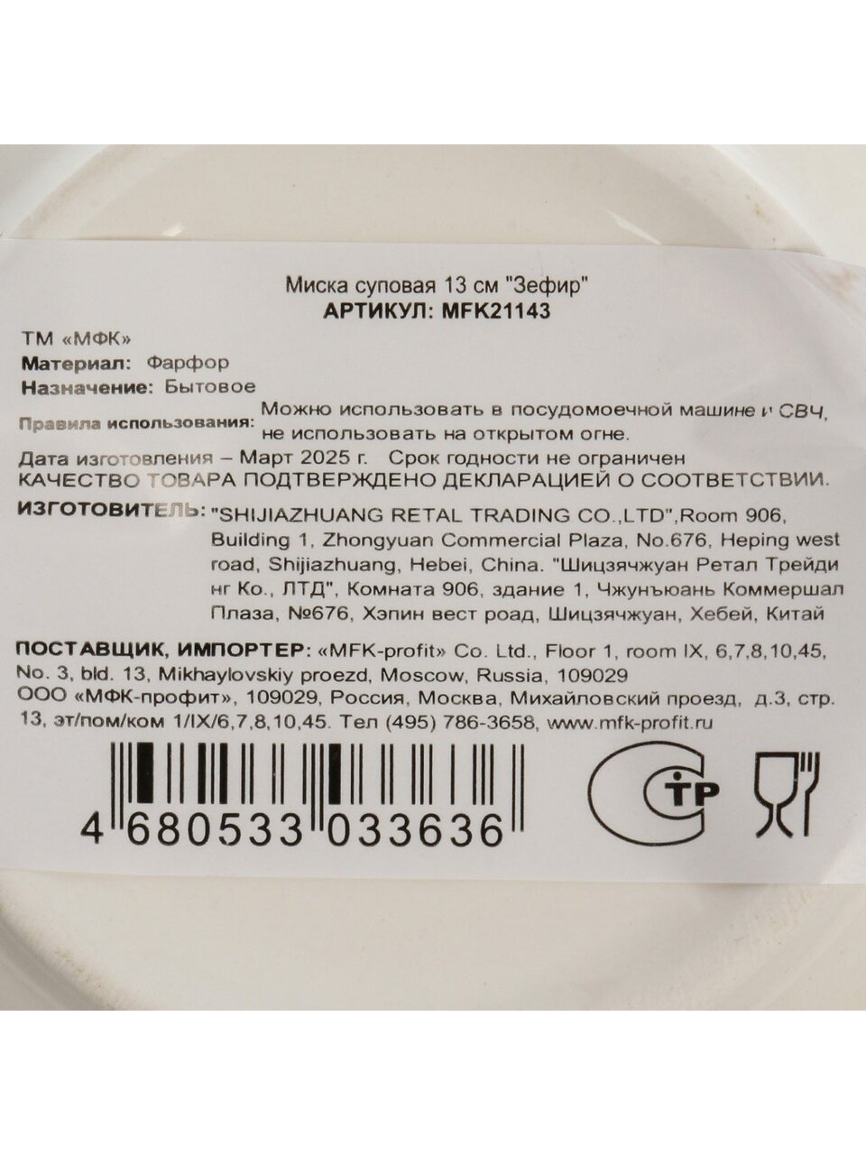 Тарелка суповая фарфоровая 13 см MFK Зефир: компактное решение для уютных обедов и сервировки, прочность и стиль для дома и дачи по выгодной цене.
