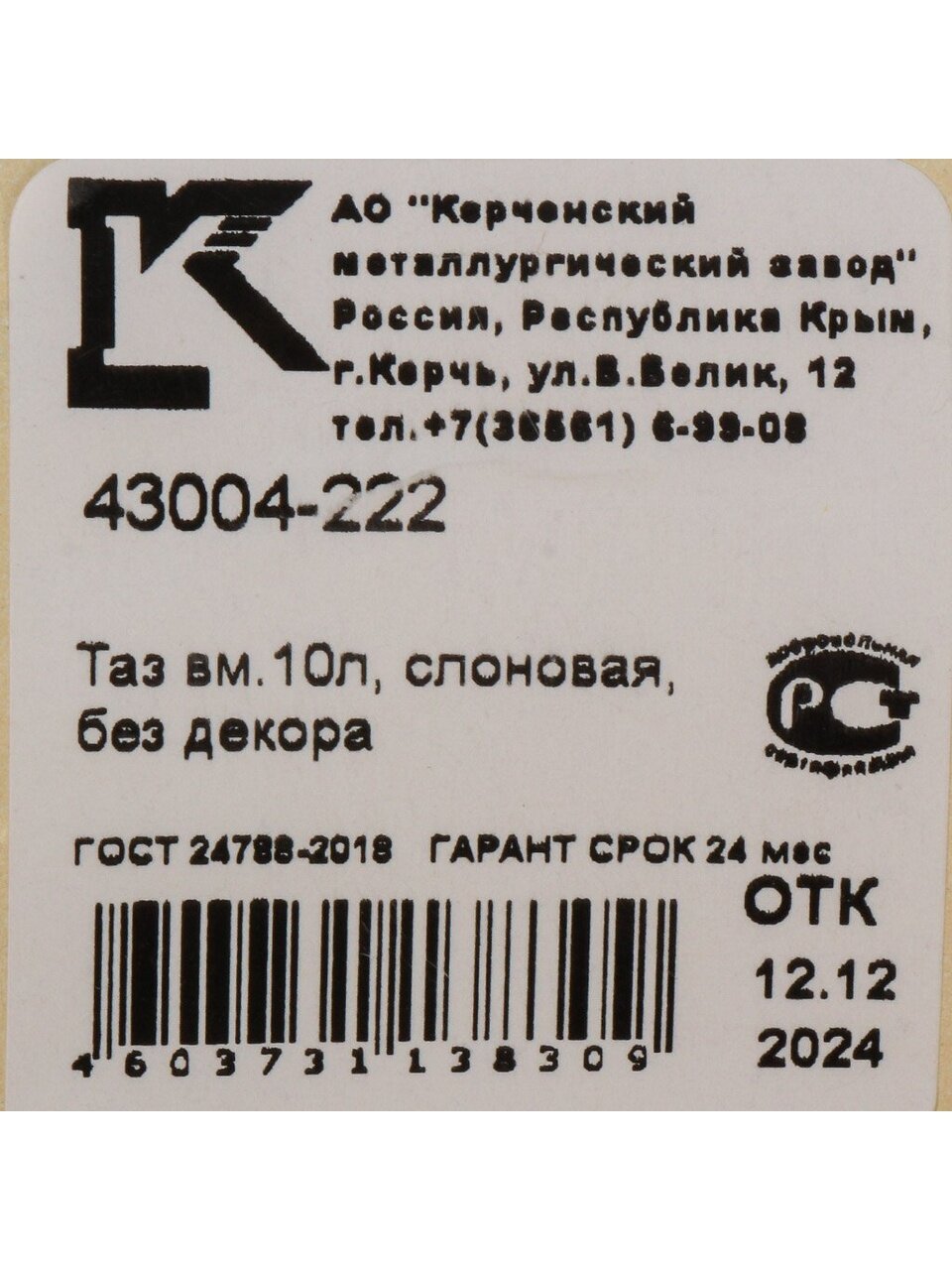 Таз металл, эмалированный, 10 л, круглый, слоновая кость, Керченский металлургический завод, 43004-222
