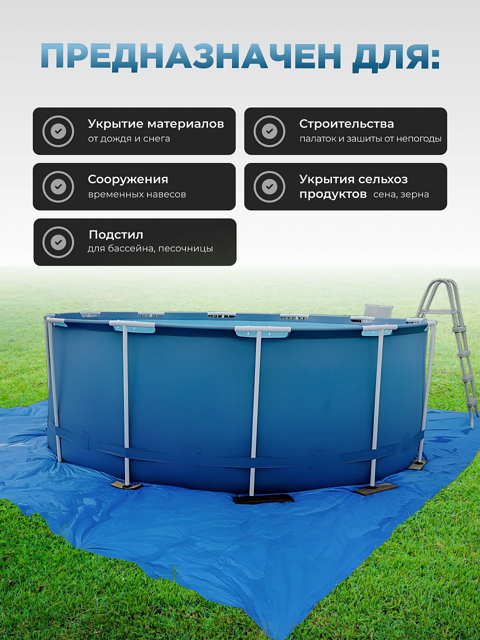 Тент универсальный TP-60-4-6-BL — оптимальный выбор для тех, кто ценит практичность, долговечность и удобство. Благодаря высокой устойчивости к влаге и ультрафиолету, материал эффективно защищает имущество, строительные материалы, садовую мебель, автомобили и урожай на огороде. Такой тент незаменим для дачного участка, пикника, временного укрытия техники, а также для организации пространства на строительной площадке или во дворе частного дома. Простота монтажа и компактность хранения делают его идеальным для сезонного и постоянного использования.