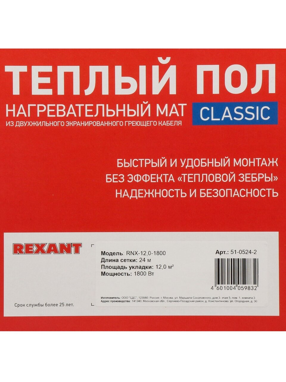 Теплый пол 12 м2 Rexant Classic RNX-12-1800 — быстрый монтаж, энергоэффективное отопление и комфорт даже зимой. Решение для дома и дачи по выгодной цене.