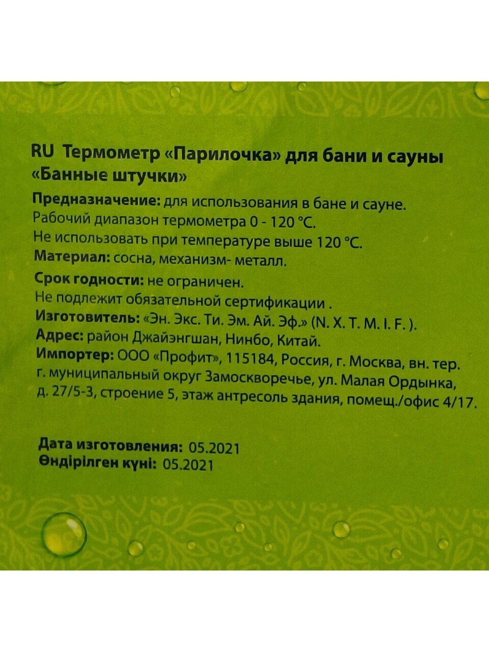 Русский человек очень любит ходить в баню и париться. Поэтому полезно иметь измеритель, который позволяет следить за температурой воздуха в парилке. Этот стильный термометр - настоящая гордость любой парилки. Диапазон измерения температуры воздуха - от 0 до +120 градусов Цельсия.