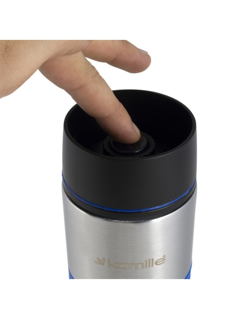 - Уникальное решение: герметичная крышка с кнопкой предотвращает проливы и сохраняет температуру напитка до 8 часов.