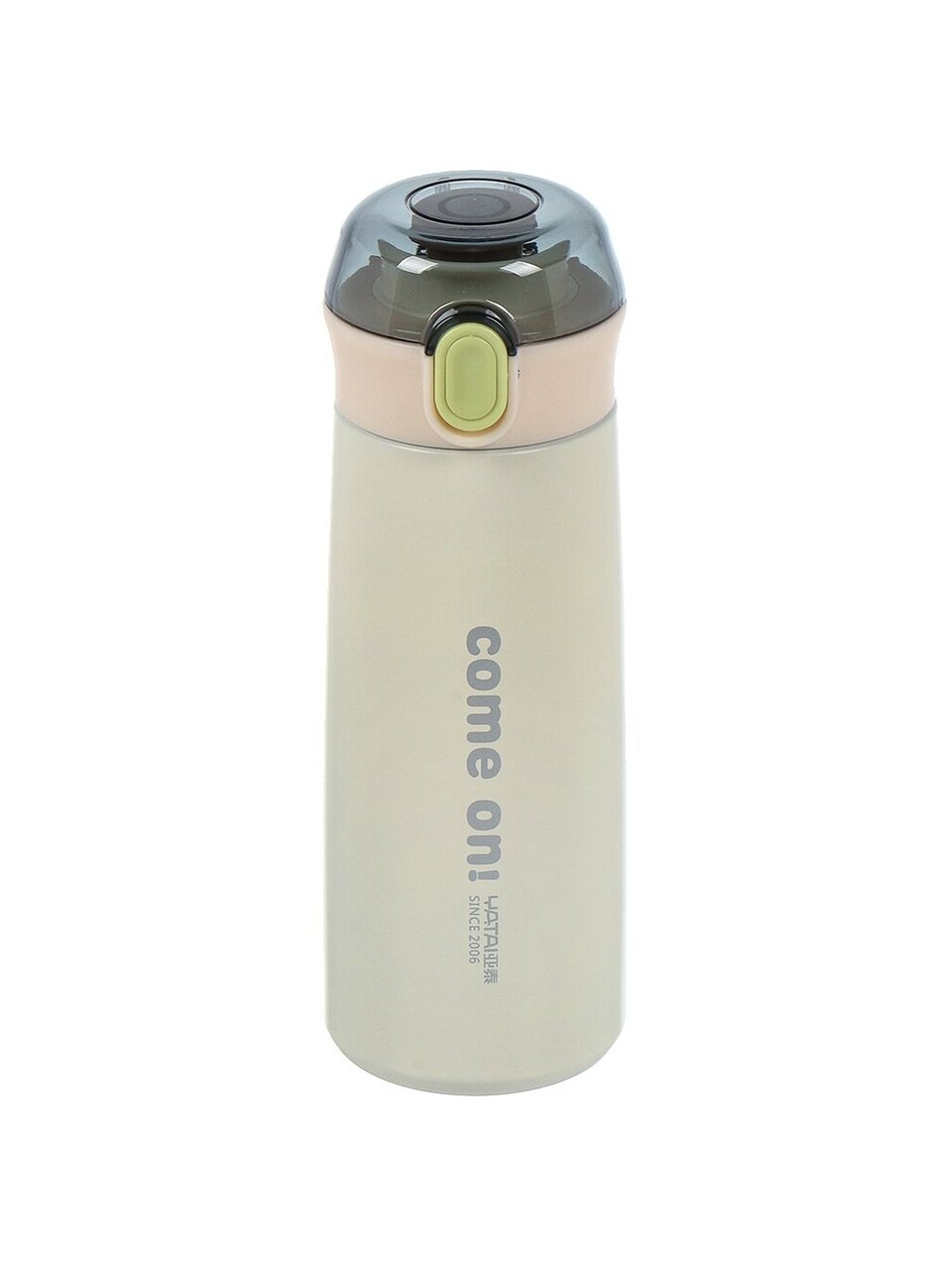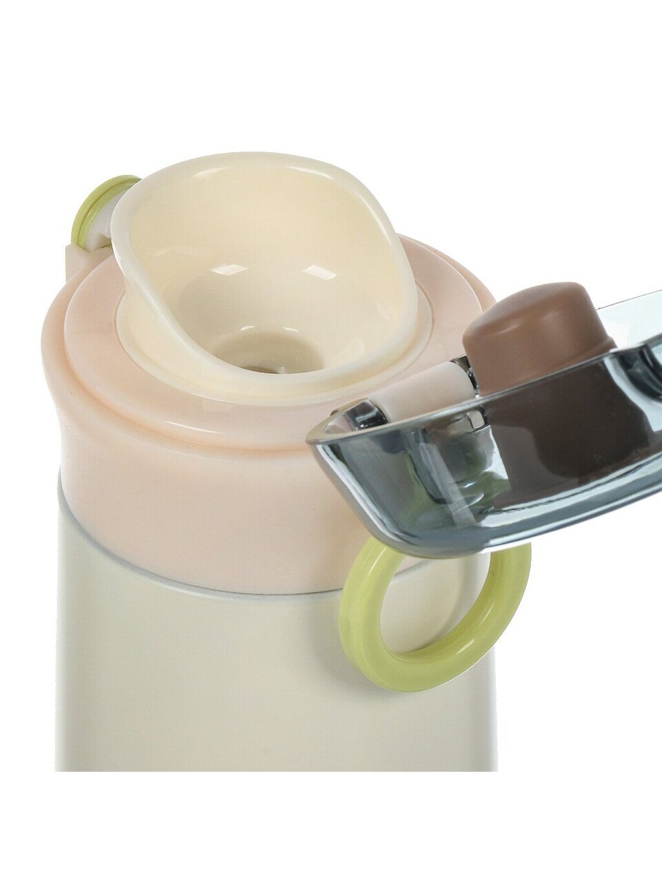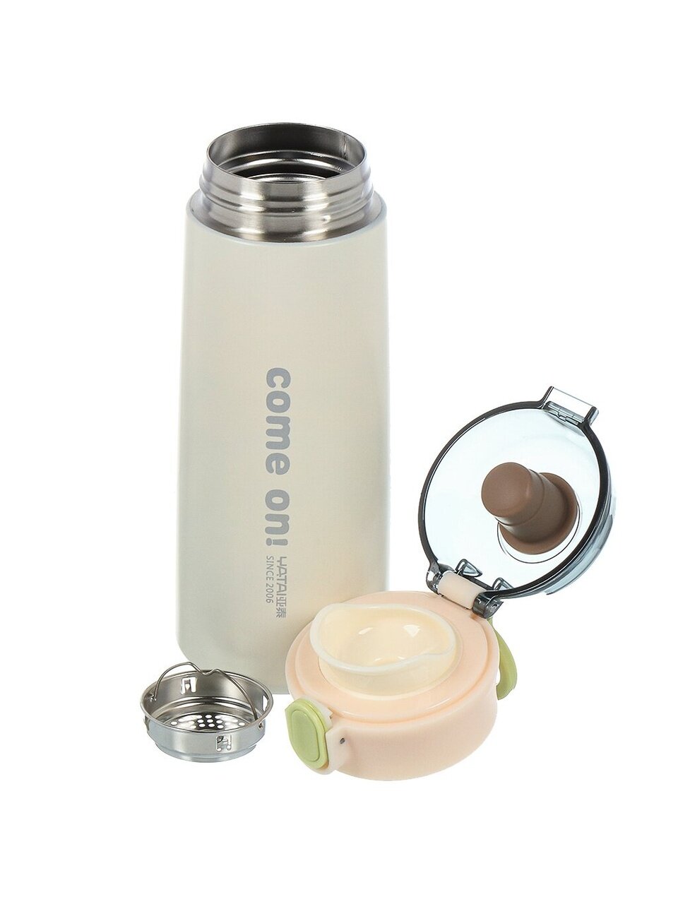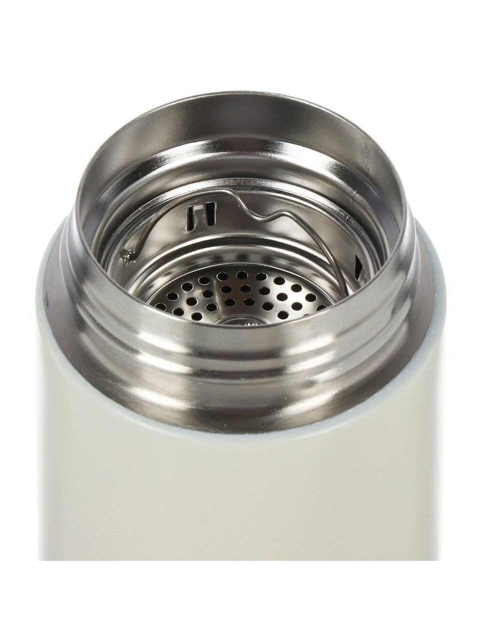 Объём — 0.4 литра, компактная форма подходит для рюкзака, сумки или подстаканника в автомобиле. Материал — нержавеющая сталь, цвет — пудровый (бежевый).