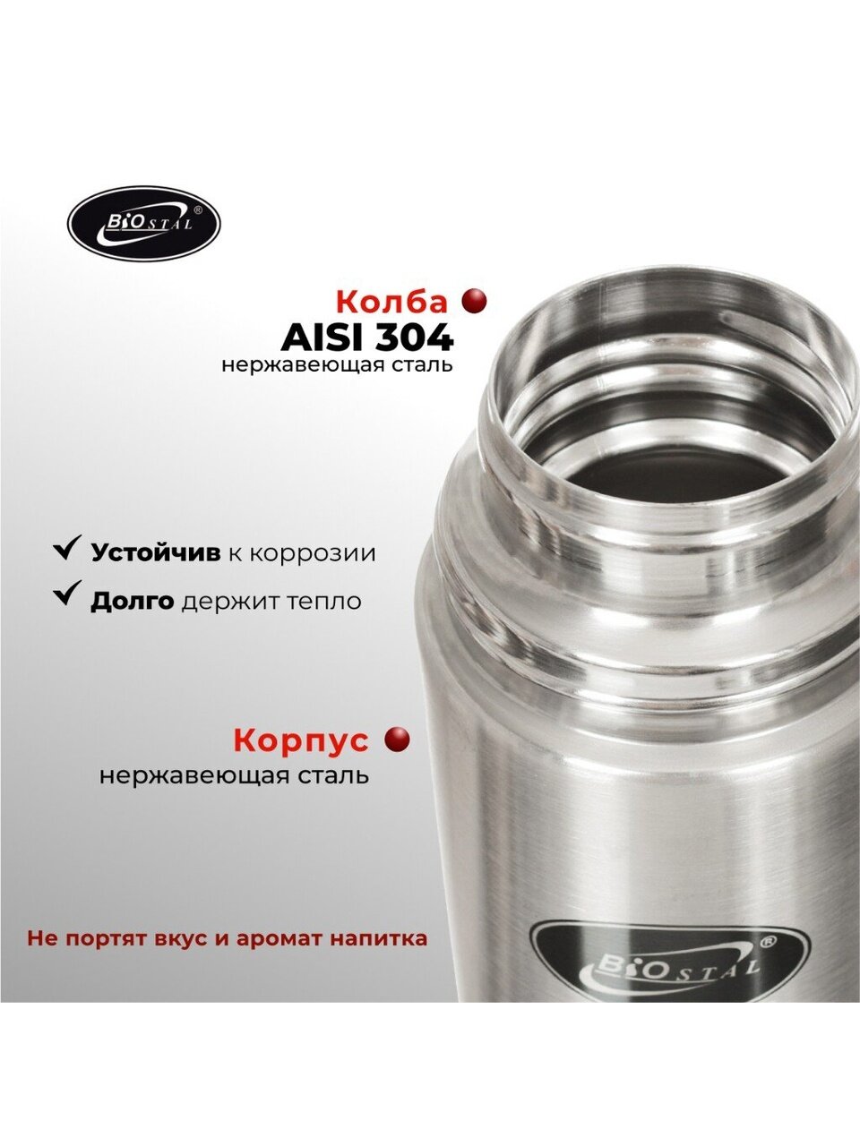 Термос из нержавеющей стали Biostal 0.5 л — это идеальное решение для тех, кто ищет надёжный термос для напитков, который легко брать с собой. Благодаря узкой горловине и навинчивающейся крышке термос не протекает даже при активной транспортировке. Часто спрашивают: «Какой термос лучше для чая или кофе на работу?» — Biostal NV-500 оптимален по сочетанию компактности и длительного сохранения температуры.