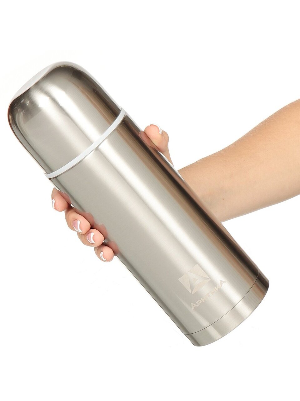 Термос Арктика 1 л с узкой горловиной: держит тепло до 26 часов, не протекает, идеален для походов, авто и дома. Стальной корпус — надёжно и долговечно.