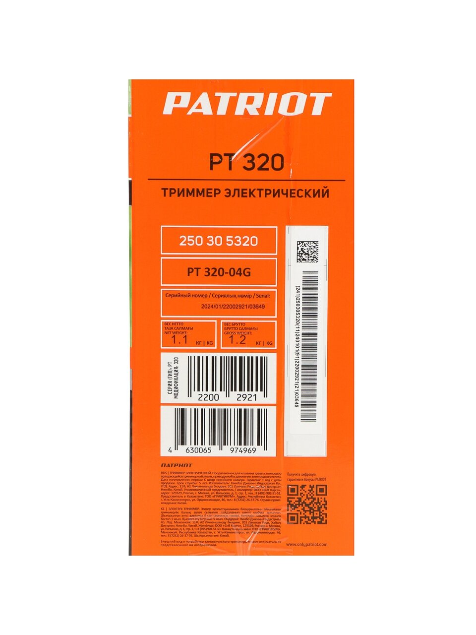 Триммер электрический, Patriot, PT 320, 300 Вт, D-ручка, леска/нож, неразборный вал