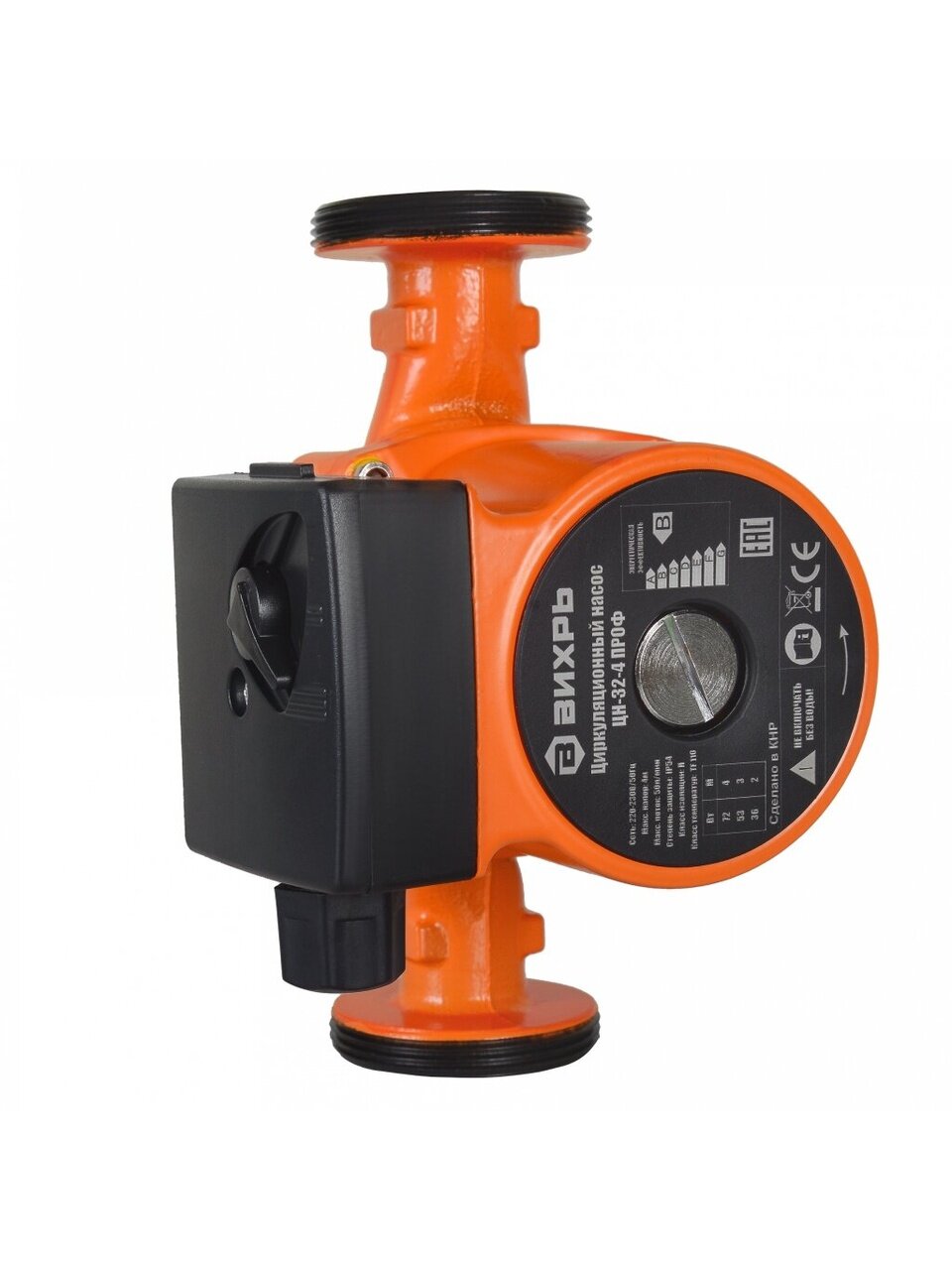 Циркуляционный насос Вихрь ЦН-32-4 предназначен для обеспечения циркуляции воды в системах отопления, круговых трубопроводах горячего и холодного водоснабжения, центральных отопительных установках и системах перекачки промышленных вод, системах кондиционирования, охлаждения. Насос представляет собой компактное устройство с всасывающей и нагнетающей функциями, вода перекачивается при помощи вращения рабочего колеса электродвигателем насоса. Насос имеет три скорости работы, выбираемые ручным переключением вращающейся ручки на клеммной коробке.