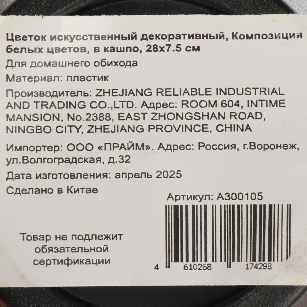 Вы можете приобрести «Цветок искусственный декоративный Композиция белых цветов, в кашпо, 28х7.5 см, A300105» и другие товары в нашем интернет-магазине в Смоленске по низким ценам и с бесплатным самовывозом.