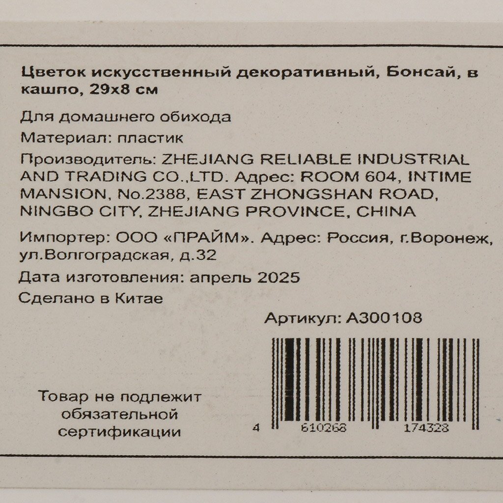 Декоративный искусственный бонсай в кашпо 29х8 см: стильное озеленение для дома, офиса и подарка без хлопот по уходу.