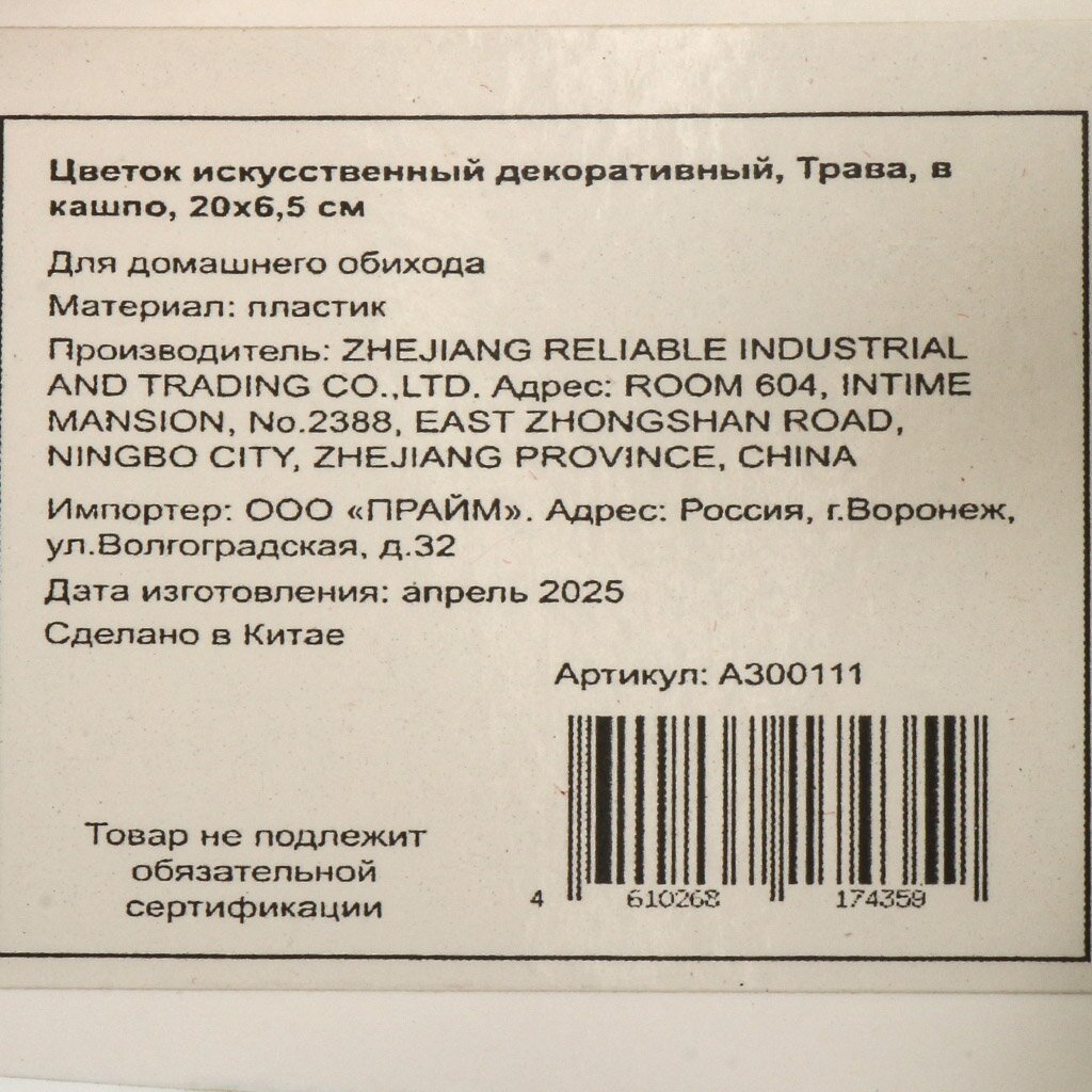 Вы можете приобрести «Цветок искусственный декоративный Трава, в кашпо, 20х6.5 см, A300111» и другие товары в нашем интернет-магазине в Коврове по низким ценам и с бесплатным самовывозом.