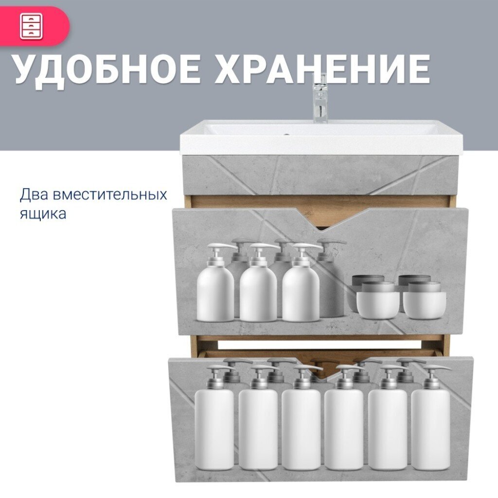 Вы можете приобрести «Тумба Doratiz, Фьорд 70, 2 ящика, под умывальник Астория 70, напольная, цемент, дуб Бунратти, 9908.185» и другие товары в нашем интернет-магазине в Ельце по низким ценам и с бесплатным самовывозом.