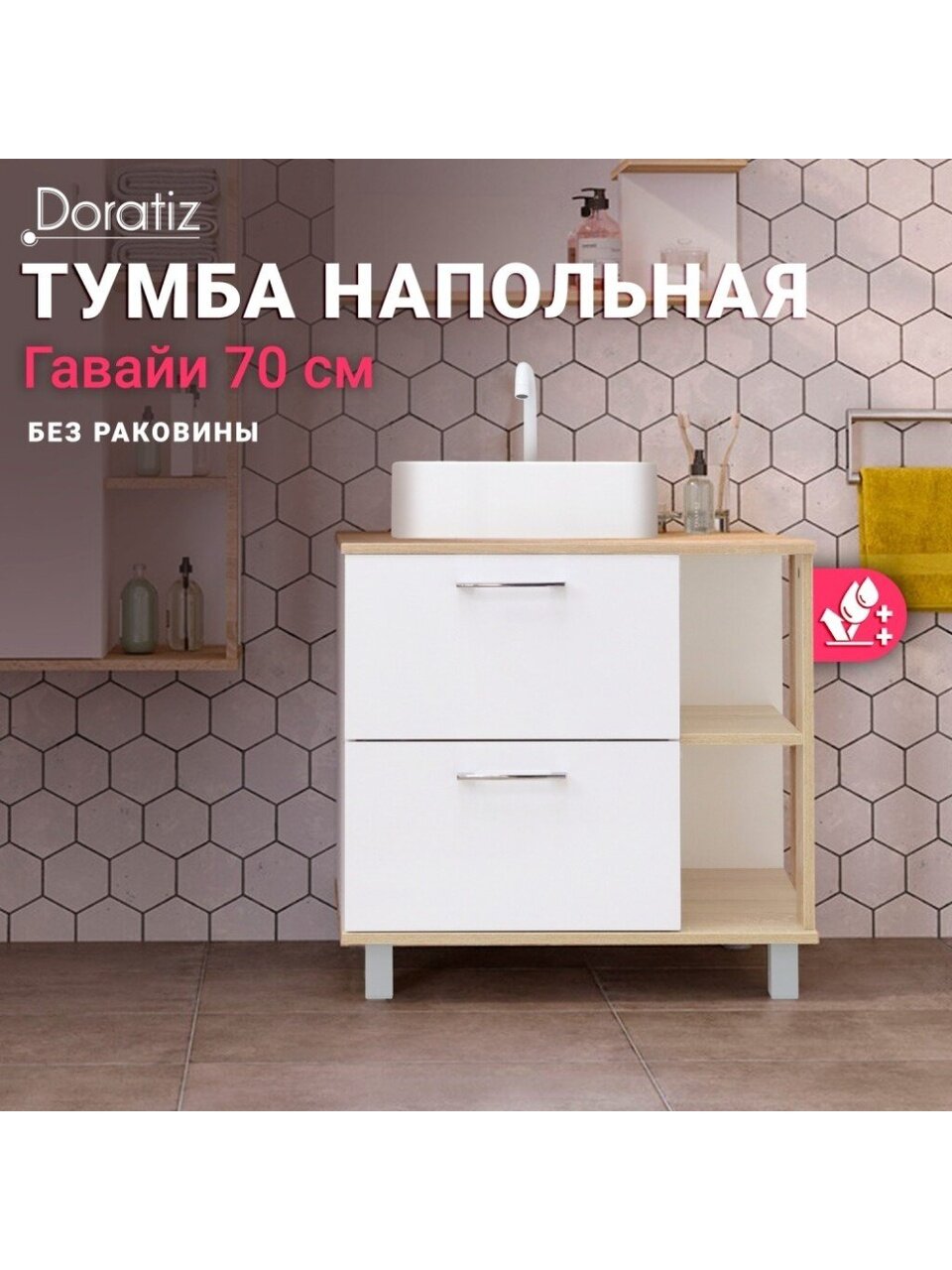 Создайте стильный и функциональный интерьер в вашей ванной комнате с тумбой Doratiz Гавайи 70. Это идеальное решение для тех, кто ценит элегантность и практичность в дизайне. Тумба выполнена в изысканном сочетании белого цвета и дуба сонома, что добавляет нотку естественности и свежести в ваш интерьер.