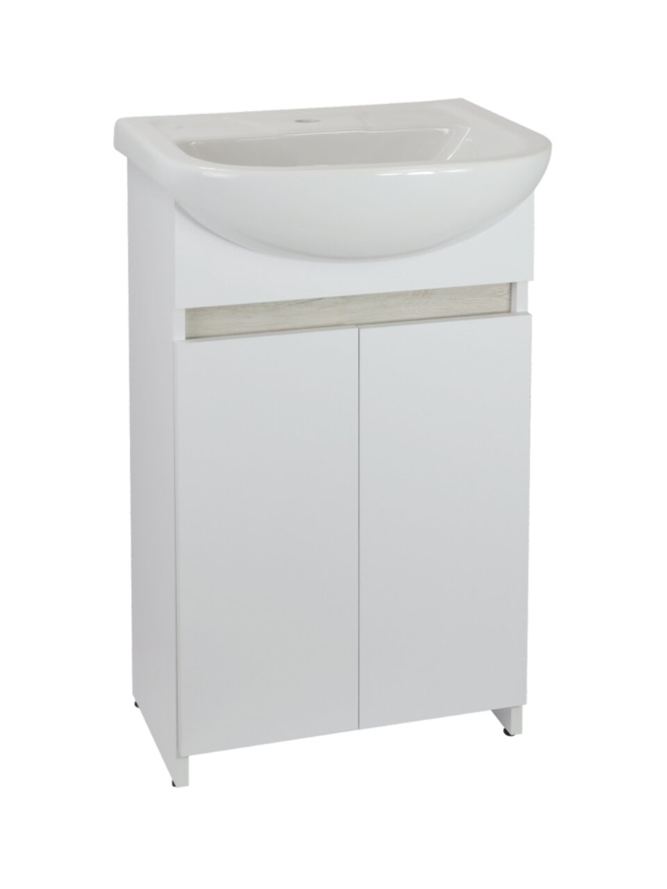 Тумба Doratiz Бора-бора с 2 ящиками под умывальник Браво 50: компактное решение для ванной — экономьте место и время на уборке, выбирая стильный белый/дуб!