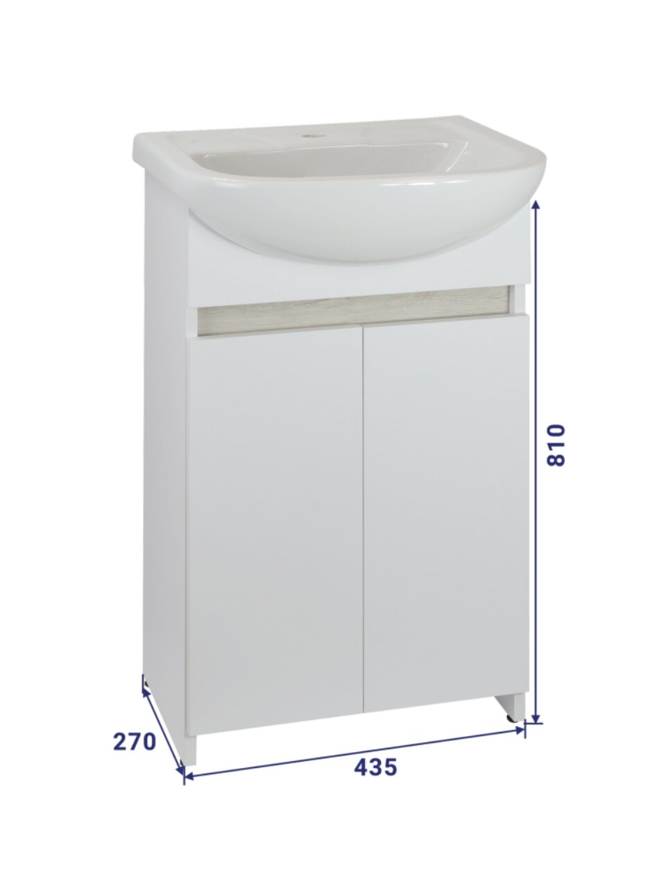 Тумба Doratiz Бора-бора специально разработана для умывальника Браво 50. Размеры 435x270x810 мм обеспечивают стабильную установку и экономию пространства, а напольная конструкция упрощает монтаж.