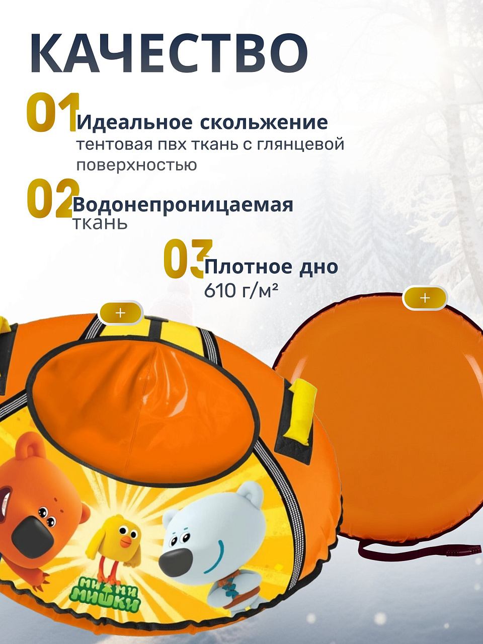 Санки-ватрушка Nika Ми-ми-мишки 70 см — яркие эмоции и безопасность для детей 5-12 лет: прочная камера, усиленные швы, до 70 кг, идеальный подарок для зимы.