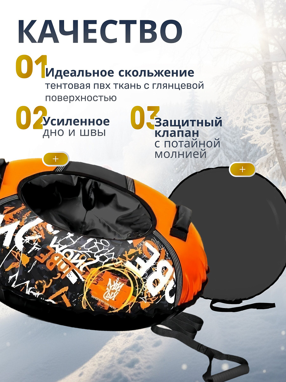 Красочный тюбинг с принтом "Граффити" из принтованной ткани подарит незабываемые впечатления от зимней прогулки.