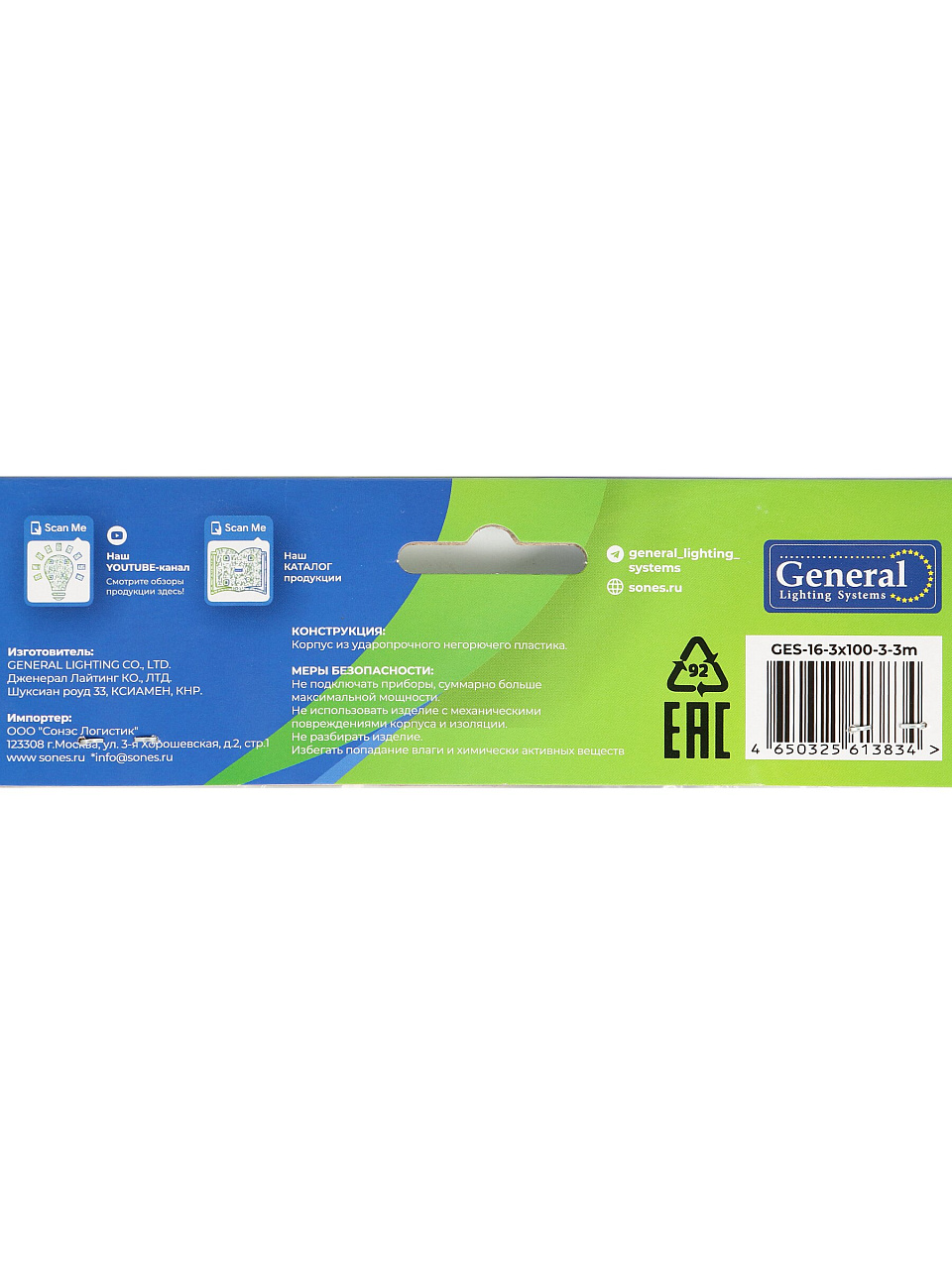 Вы можете приобрести «Удлинитель бытовой 3 гнезда, 3 м, ПВС, 3х1 мм², с заземлением, 16 А, 3500 Вт, General Lighting Systems, 470093» и другие товары в нашем интернет-магазине в Таганроге по низким ценам и с бесплатным самовывозом.