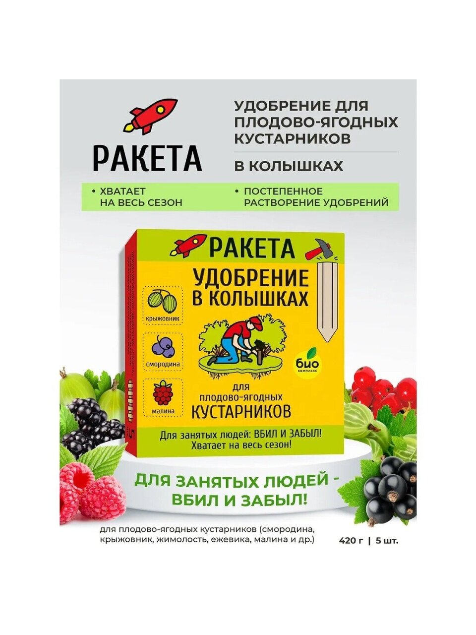 Ракета - это комплексное минеральное удобрение пролонгированного действия для плодово-ягодных кустарников в виде колышков для личных садовых и подсобных хозяйств.