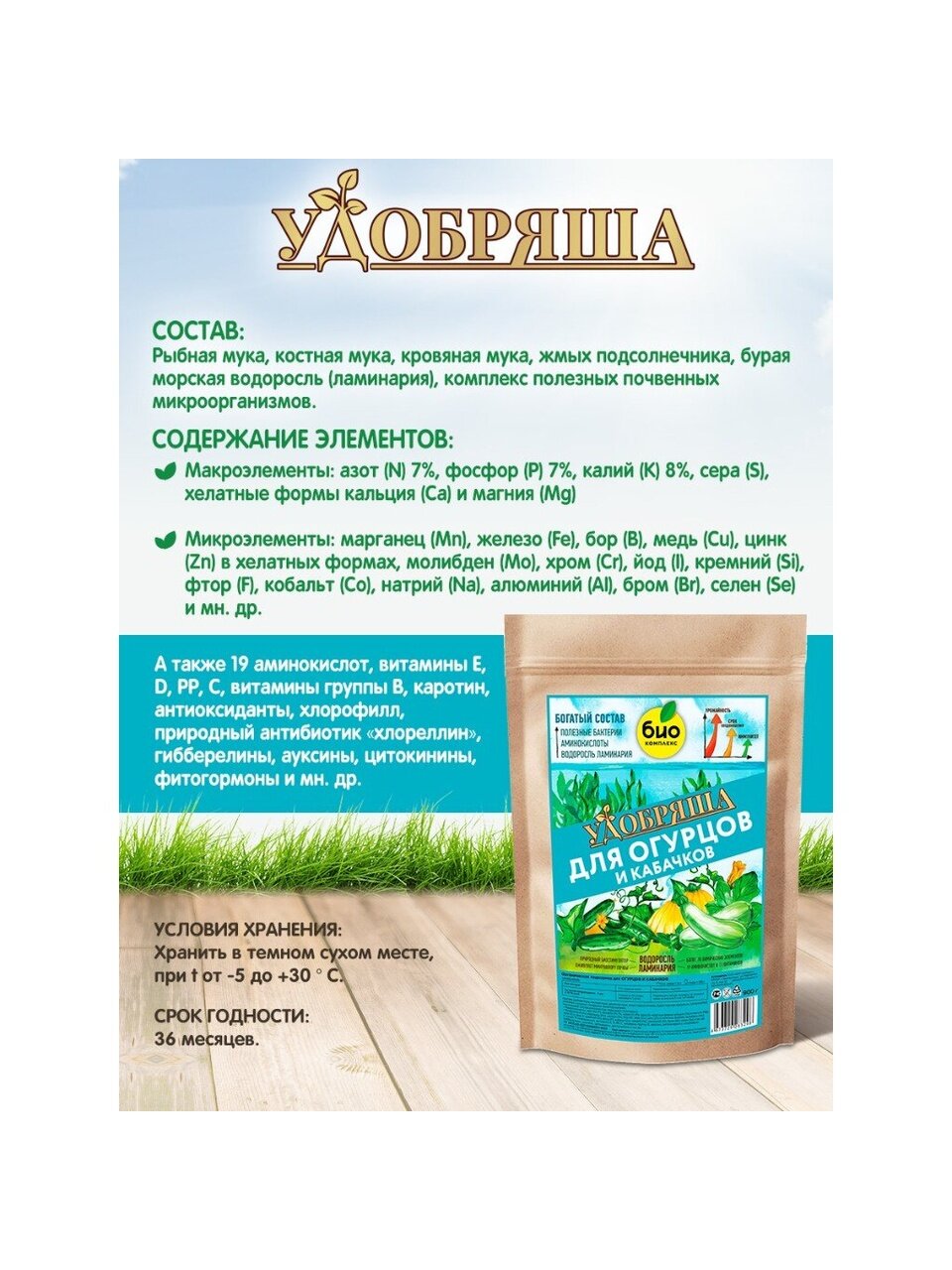 "Удобряша" для огурцов и кабачков – это органическое удобрение с аминокислотами и полезными почвенными бактериями. Разработано с учетом повышенной потребности огурцов в питании.