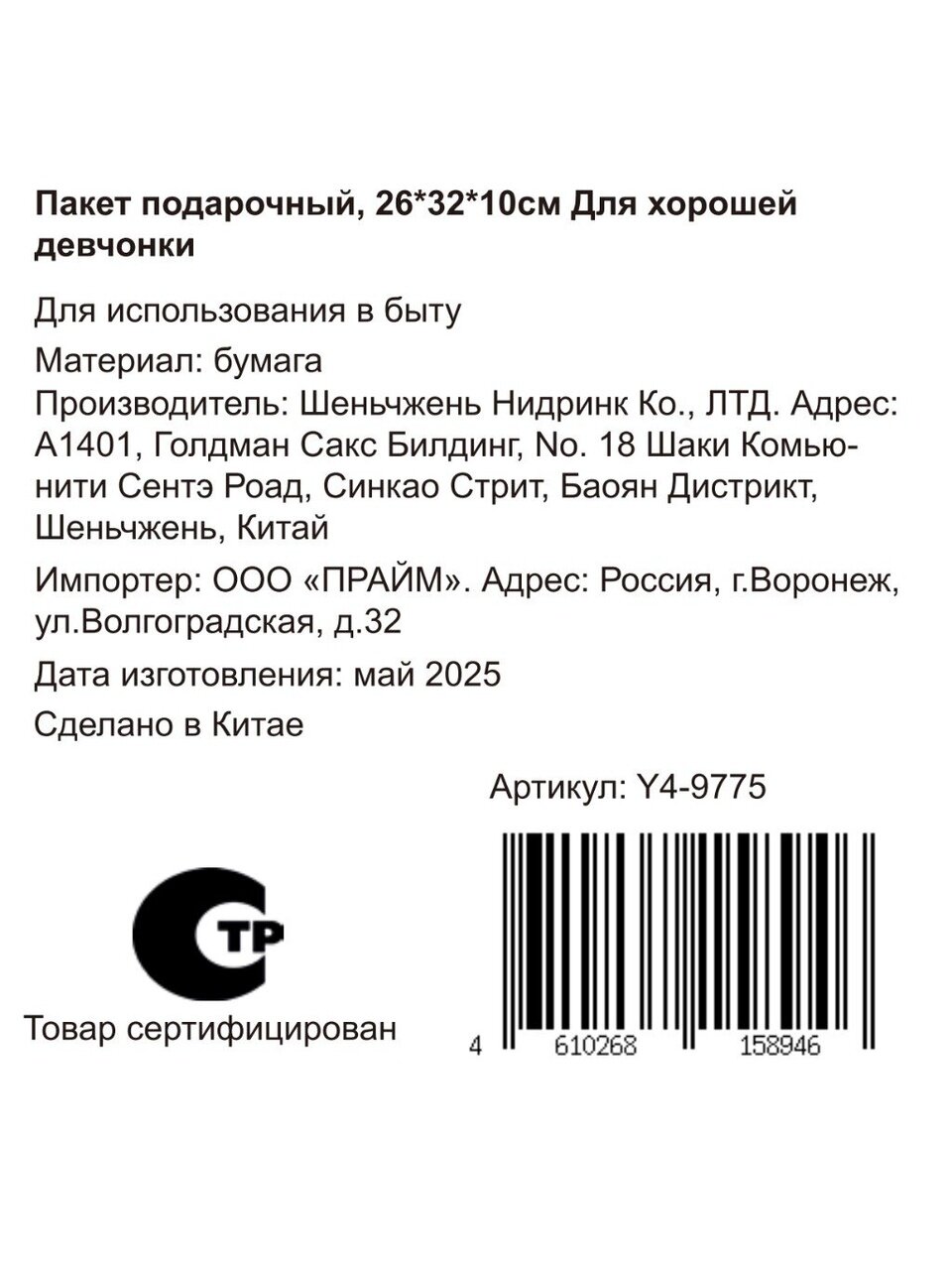Вы можете приобрести «Пакет подарочный бумага, 32х10х26 см, Для хорошей девчонки, Y4-9775» и другие товары в нашем интернет-магазине в Орле по низким ценам и с бесплатным самовывозом.