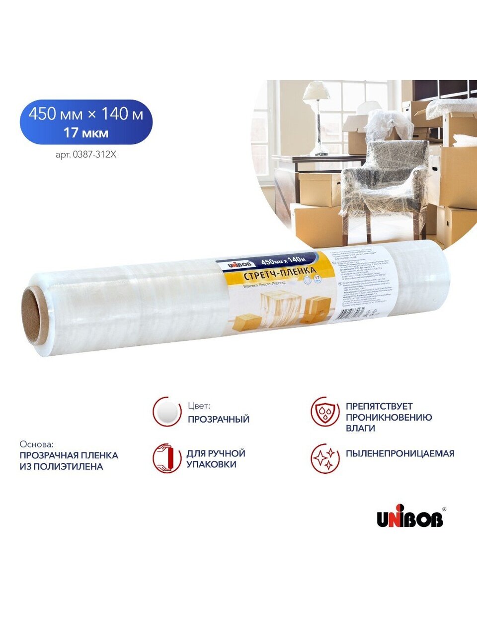 Стрейч-пленка Unibob 450 мм — идеальное решение для ручной упаковки товаров дома или на даче. Пылевлагонепроницаемая пленка из первичного сырья обеспечивает надежную защиту от влаги и пыли. Прочная толщина 17 мкм и оптимальная длина 140 м позволяют экономно расходовать материал и быстро упаковывать любые предметы. Отличный выбор для хранения и перевозки.