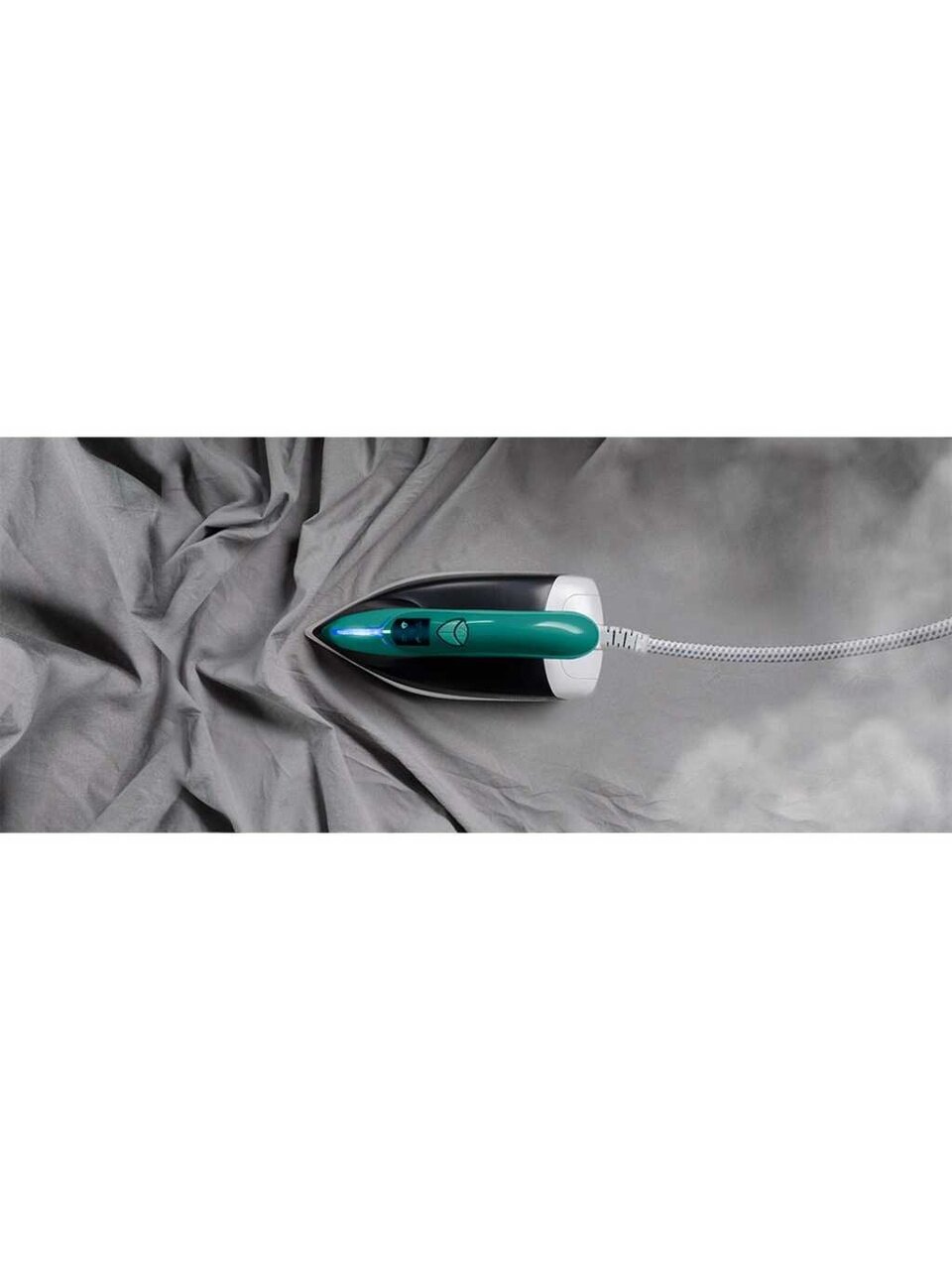 Благодаря высокой температуре пара он не только борется со складками и неровностями на одежде, но и обеззараживает, очищает ткани. Особенность модели в постоянной подаче пара на уровне 120 г/мин. Для работы со складками на плотных жестких тканях можно воспользоваться паровым ударом мощностью 400 г/мин.