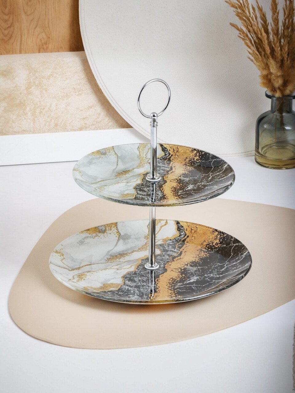 - Функциональность: два яруса позволяют удобно разместить разнообразные фрукты, экономя пространство и создавая эффектную композицию.