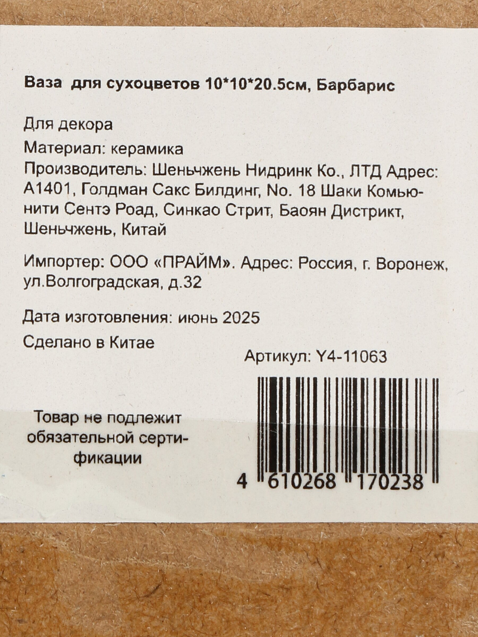 Вы можете приобрести «Ваза для сухоцветов керам, настольная, 10*10*20.5 см, Барбарис, белый, Y4-11063» и другие товары в нашем интернет-магазине в Ельце по низким ценам и с бесплатным самовывозом.