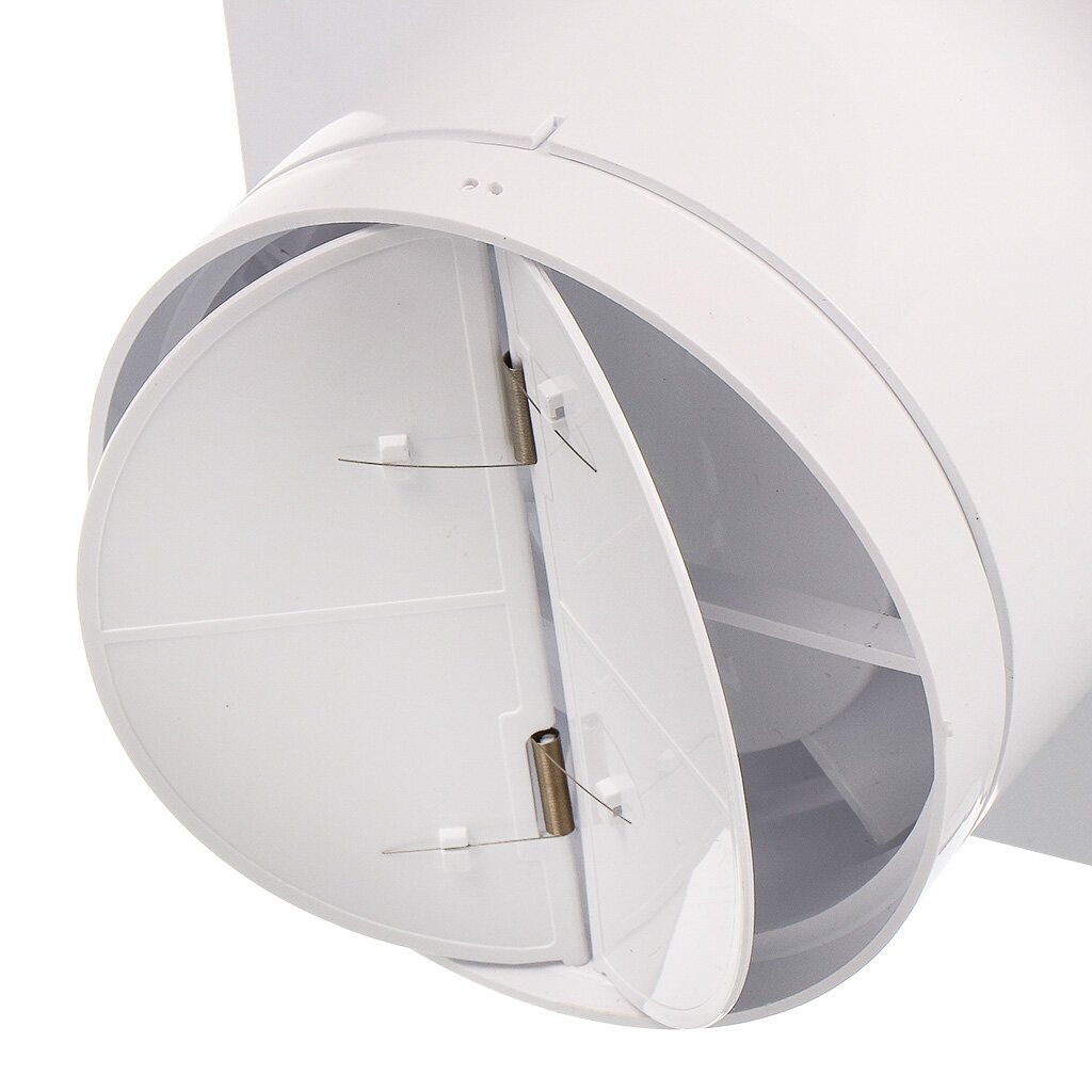 Вентилятор снабжен обратным клапаном. Обратный клапан – это один из функциональных узлов, который расположен в конце вентилятора, предназначен пропускать воздух только в одном направлении. Таким образом, воздух удаляется из помещения, а посторонние запахи не проникают вовнутрь.